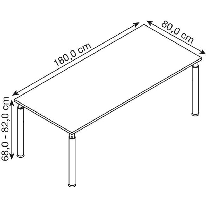 Der HAMMERBACHER höhenverstellbare Schreibtisch VYS19/5/G in lichtgrau vereint Funktionalität und modernes Design auf ideale Weise. Die Tischplatte besteht aus robuster Spanplatte, die nicht nur eine ansprechende Optik bietet, sondern auch eine hohe Stabilität gewährleistet. Das Gestell aus hochwertigem Stahl in grafit sorgt für einen soliden Stand und ist gleichzeitig ein stilvolles Element in Ihrem Arbeitsumfeld. Mit den Maßen von 180 cm in der Breite, 80 cm in der Tiefe und einer Höhe von 68 cm passt dieser Schreibtisch perfekt in verschiedene Büro- und Arbeitsumgebungen. Die Möglichkeit, die Höhe des Schreibtisches individuell anzupassen, fördert eine ergonomische Sitzhaltung und trägt zu einem gesunden Arbeitsumfeld bei. So können Sie sowohl im Sitzen als auch im Stehen arbeiten, was die Flexibilität und den Komfort während Ihrer täglichen Aufgaben erhöht. Die Serie YS19 von HAMMERBACHER ist bekannt für ihre durchdachte Konstruktion und Langlebigkeit. Der Schreibtisch bietet keine zusätzlichen Fächer oder Schübe, was Ihnen viel Platz für Ihre Arbeitsmaterialien lässt und eine klare, aufgeräumte Arbeitsfläche fördert. Die lichtgraue Farbe der Tischplatte harmoniert hervorragend mit dem grafitfarbenen Gestell und fügt sich nahtlos in moderne Bürokonzepte ein. Ob für das Homeoffice, ein kreatives Studio oder ein klassisches Büro, der HAMMERBACHER höhenverstellbare Schreibtisch VYS19/5/G ist die ideale Wahl für alle, die Wert auf Qualität, Ergonomie und ansprechendes Design legen. Genießen Sie die Vorteile eines flexiblen Arbeitsplatzes, der sich Ihren Bedürfnissen anpasst und gleichzeitig stilvoll aussieht.Technische Daten
