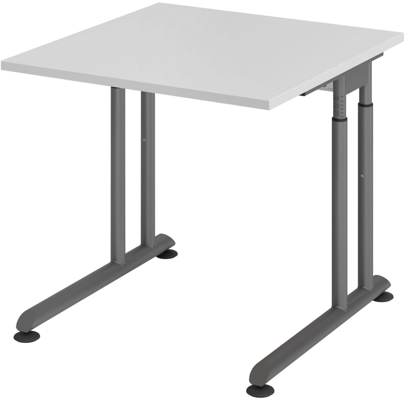 Der HAMMERBACHER höhenverstellbare Schreibtisch VZS08/5/G in lichtgrau vereint Funktionalität und modernes Design in einem ansprechenden Möbelstück. Mit einer Tischplatte aus robuster Spanplatte und einem stabilen Stahlgestell bietet dieser Schreibtisch nicht nur eine ansprechende Optik, sondern auch eine hohe Langlebigkeit. Die elegante lichtgraue Farbgebung verleiht jedem Büro oder Arbeitszimmer eine frische und moderne Atmosphäre, während das grafitfarbene C-Fuß-Gestell für zusätzliche Stabilität sorgt. Mit Maßen von 80 cm x 80 cm x 68 cm ist dieser Schreibtisch ideal für kompakte Arbeitsbereiche und bietet dennoch ausreichend Platz für Ihre Arbeitsmaterialien. Der höhenverstellbare Mechanismus ermöglicht es Ihnen, die Tischhöhe individuell anzupassen, was eine ergonomische Arbeitsweise fördert. So können Sie zwischen sitzenden und stehenden Positionen wechseln, was nicht nur den Komfort erhöht, sondern auch zur Verbesserung Ihrer Gesundheit beiträgt. Die Serie ZS08 von HAMMERBACHER steht für Qualität und durchdachte Gestaltung. Der Schreibtisch kommt ohne zusätzliche Fächer oder Schübe, was ihn besonders flexibel macht und Ihnen die Möglichkeit gibt, Ihre Arbeitsfläche nach Ihren Bedürfnissen zu gestalten. Ob für das Homeoffice oder als Arbeitsplatz im Büro, dieser höhenverstellbare Schreibtisch passt sich Ihren Anforderungen an und unterstützt Sie dabei, produktiv und konzentriert zu arbeiten. Die Kombination aus hochwertigem Material und durchdachtem Design macht den HAMMERBACHER höhenverstellbaren Schreibtisch VZS08/5/G zu einer ausgezeichneten Wahl für alle, die Wert auf Ergonomie und Stil legen.Technische Daten