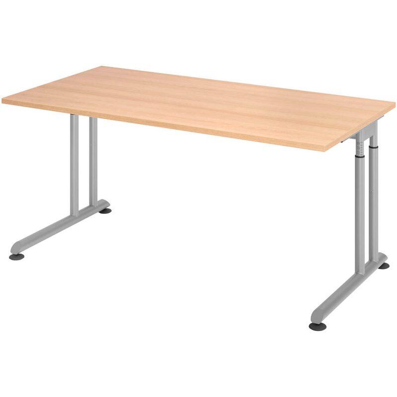 Der HAMMERBACHER höhenverstellbare Schreibtisch VZS16/E/S in edlem Eichen-Finish vereint Funktionalität und modernes Design. Die Tischplatte besteht aus hochwertiger Spanplatte, die nicht nur stabil, sondern auch pflegeleicht ist. Das robuste Stahlgestell in silberner Ausführung sorgt für eine hohe Stabilität und Langlebigkeit, während das C-Fuß-Gestell eine optimale Beinfreiheit gewährleistet. Mit den Maßen von 160 cm in der Breite, 80 cm in der Tiefe und 68 cm in der Höhe bietet dieser Schreibtisch ausreichend Platz für Ihren Laptop, Dokumente und weitere Arbeitsmaterialien. Die anpassbare Höhe ermöglicht es Ihnen, im Sitzen oder Stehen zu arbeiten, was nicht nur den Komfort erhöht, sondern auch gesundheitlichen Vorteilen dient. Ein ergonomischer Arbeitsplatz fördert die Konzentration und kann Rückenbeschwerden vorbeugen. Die ansprechende Eichenfarbe verleiht Ihrem Büro oder Arbeitszimmer eine warme und einladende Atmosphäre. Durch die schlichte Eleganz des Designs lässt sich der Schreibtisch problemlos in verschiedene Einrichtungsstile integrieren. Ob im Homeoffice oder im professionellen Büro – dieser Schreibtisch ist die ideale Wahl für alle, die Wert auf Qualität und Ästhetik legen. Mit dem HAMMERBACHER höhenverstellbaren Schreibtisch VZS16/E/S entscheiden Sie sich für ein Produkt, das nicht nur funktional, sondern auch optisch ansprechend ist. Ideal für alle, die einen flexiblen und ergonomischen Arbeitsplatz suchen.Technische Daten
