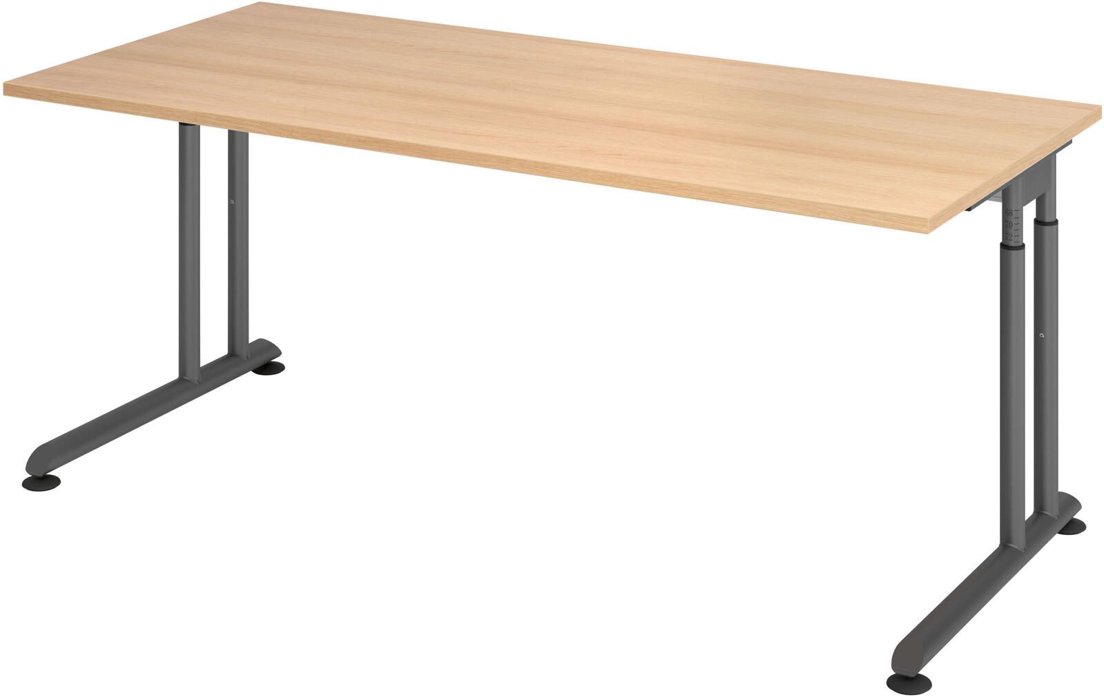Der HAMMERBACHER höhenverstellbare Schreibtisch VZS19/E/G aus Eiche vereint Funktionalität und modernes Design in einem eleganten Möbelstück. Mit einer großzügigen Tischplatte aus Spanplatte, die eine Fläche von 180 cm x 80 cm bietet, ist dieser Schreibtisch ideal für Ihr Homeoffice oder Ihr Büro. Die ansprechende Eichenoptik sorgt für eine warme und einladende Atmosphäre, während das robuste Stahlgestell in Grafit für Stabilität und Langlebigkeit sorgt.