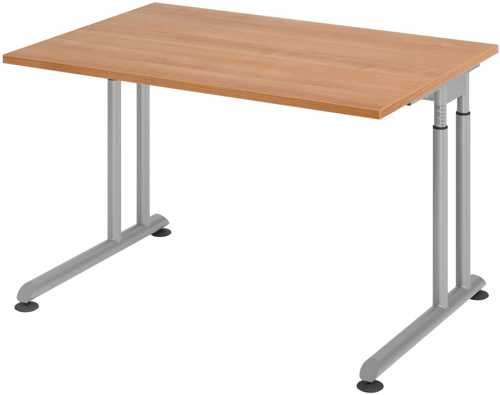 Der HAMMERBACHER höhenverstellbare Schreibtisch VZS12/N/S in edlem Nussbaum-Design vereint Funktionalität und Ästhetik auf ideale Weise. Die Tischplatte besteht aus robuster Spanplatte, die nicht nur eine ansprechende Optik bietet, sondern auch langlebig und pflegeleicht ist. Das stabile Gestell aus hochwertigem Stahl sorgt für die notwendige Stabilität und Langlebigkeit, während die elegante silberne Farbe des Gestells einen modernen Akzent setzt. Mit den Maßen von 120 cm in der Breite, 80 cm in der Tiefe und einer Höhe von 68 cm bietet dieser Schreibtisch ausreichend Platz für Ihre Arbeitsutensilien und sorgt für eine angenehme Arbeitsumgebung. Die Möglichkeit, die Höhe des Schreibtisches individuell anzupassen, ermöglicht es Ihnen, ergonomisch zu arbeiten, was besonders wichtig für Ihre Gesundheit ist. Durch das C-Fuß-Gestell wird zudem eine optimale Beinfreiheit gewährleistet, sodass Sie sich während Ihrer Arbeit frei bewegen können. Der HAMMERBACHER Schreibtisch ZS12 ist ideal für das Homeoffice oder das Büro und unterstützt Sie dabei, effizient und komfortabel zu arbeiten. Dank des zeitlosen Nussbaum-Farbtons fügt sich der Schreibtisch harmonisch in verschiedene Einrichtungsstile ein und verleiht Ihrem Arbeitsbereich eine warme und einladende Atmosphäre. Ohne zusätzliche Fächer oder Schübe bleibt der Schreibtisch klar und aufgeräumt, was Ihnen hilft, den Fokus auf Ihre Aufgaben zu legen. Genießen Sie die Kombination aus modernem Design und praktischen Eigenschaften, die der HAMMERBACHER höhenverstellbare Schreibtisch VZS12/N/S bietet, und schaffen Sie sich einen Arbeitsplatz, der sowohl funktional als auch stilvoll ist.Technische Daten