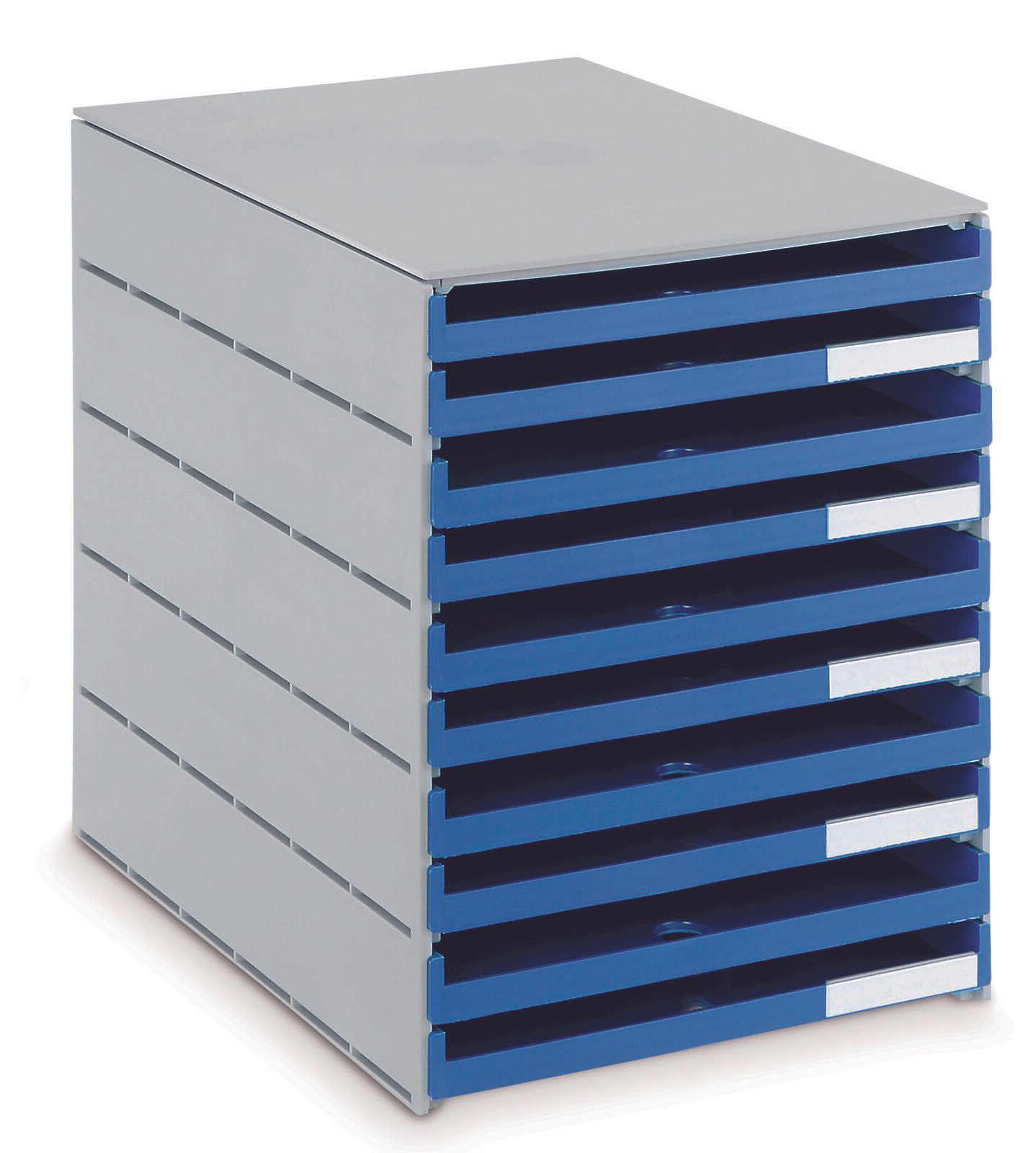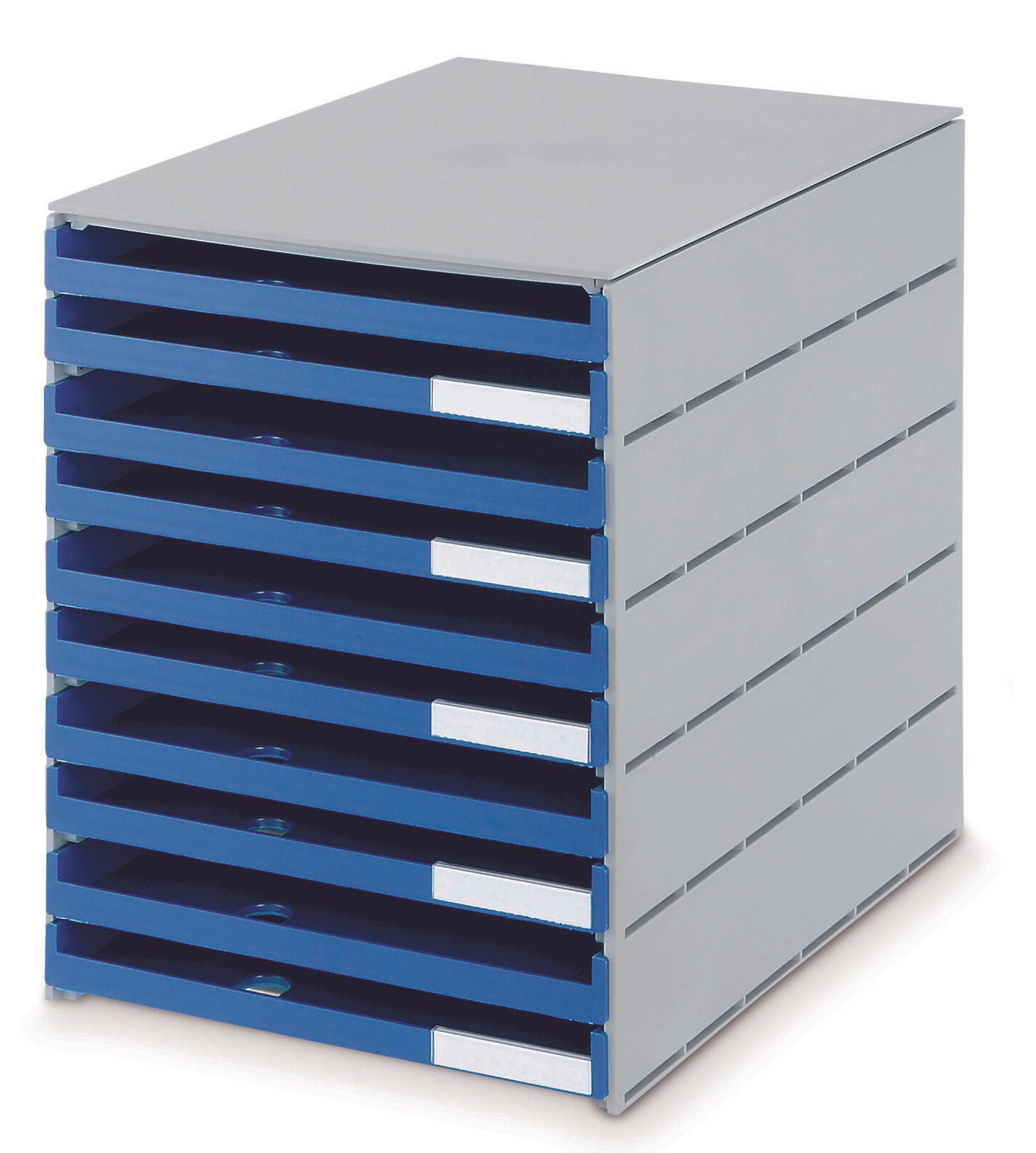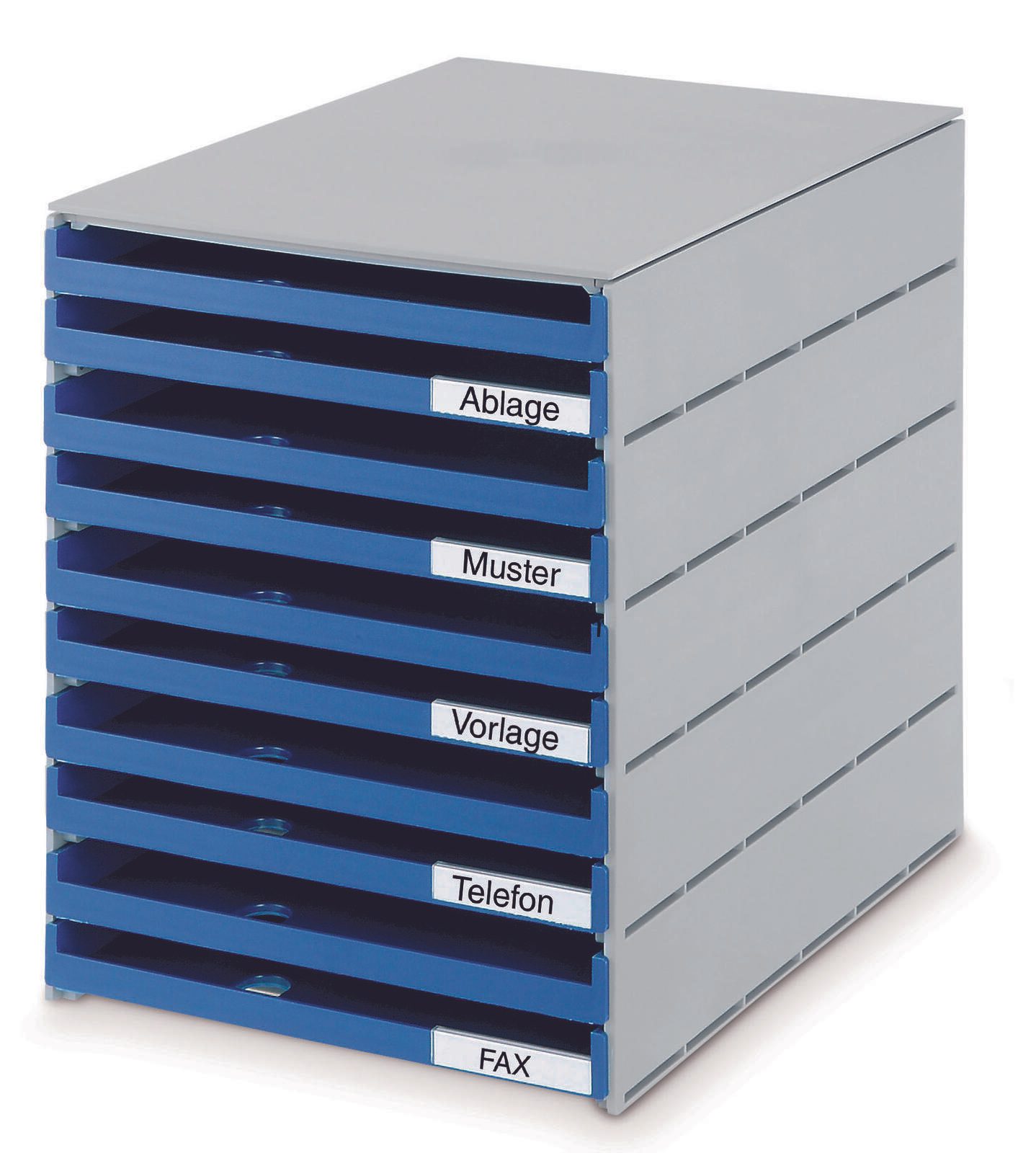 Die klare blaue Farbe der Schubladen verleiht deinem Arbeitsplatz einen Hauch von Farbe und erleichtert die Identifizierung der verschiedenen Schubladen. Jede Schublade ist sorgfältig gestaltet, um ein reibungsloses Öffnen und Schließen zu gewährleisten, und bietet ausreichend Platz für deine Unterlagen.