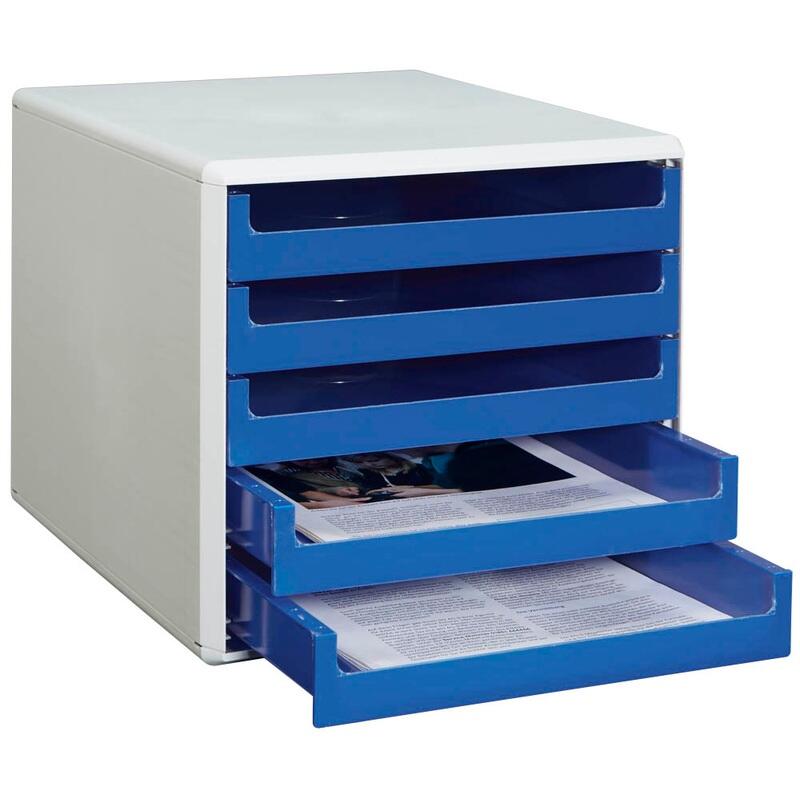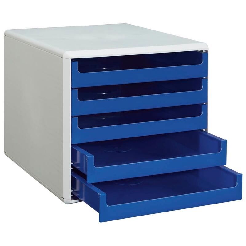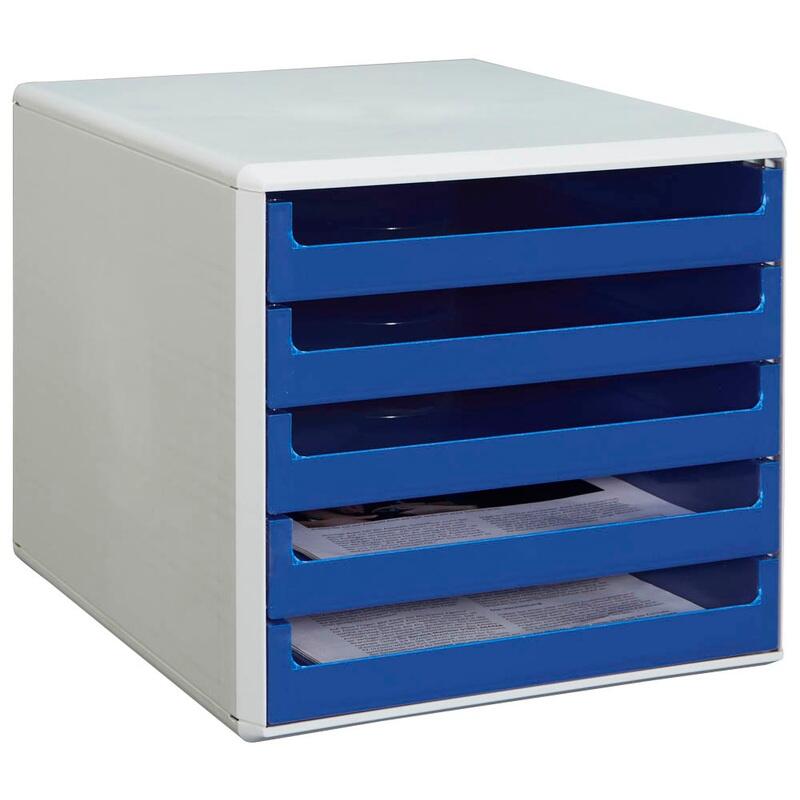 Halte mit dieser Schubladenbox alle deine wichtigen Unterlagen ordentlich sortiert und griffbereit. Die fünf Fächer bieten ausreichend Platz für eine Vielzahl von Dokumenten, während das robuste Kunststoffmaterial eine langlebige und zuverlässige Aufbewahrungslösung garantiert.