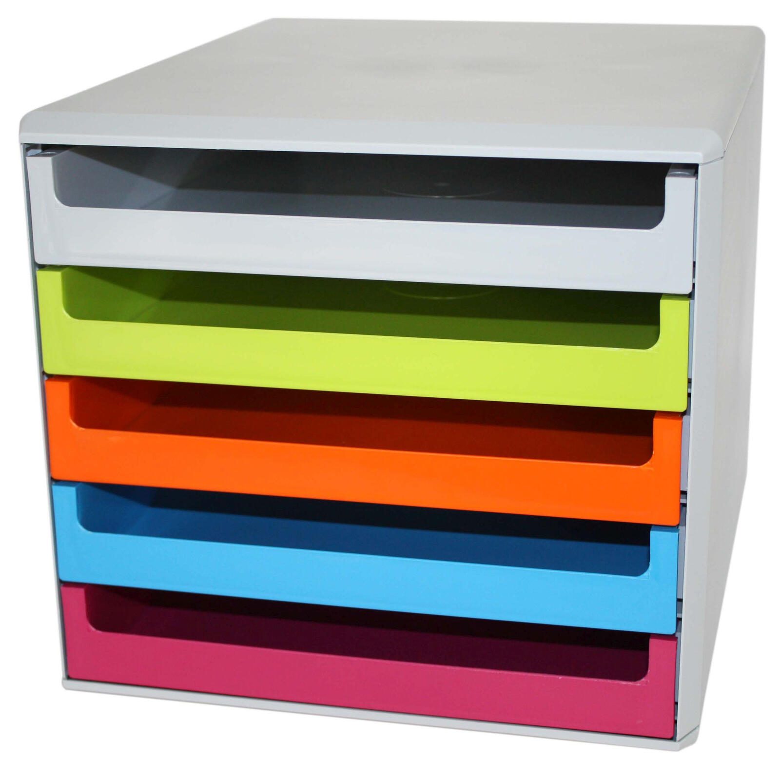 Die M&M Schubladenboxen sind die perfekte Lösung zur Organisation von DIN A4 Dokumenten. Mit Maßen von 28,5 x 35,7 x 26,0 cm bieten sie ausreichend Platz für deine Unterlagen. Das Besondere an dieser Schubladenbox sind die lebendigen Farben der Schubladen: grau, grün, orange, blau und rot. Diese Farbvielfalt bringt Frische in dein Arbeitsumfeld und ermöglicht die einfache Zuordnung von Dokumenten.