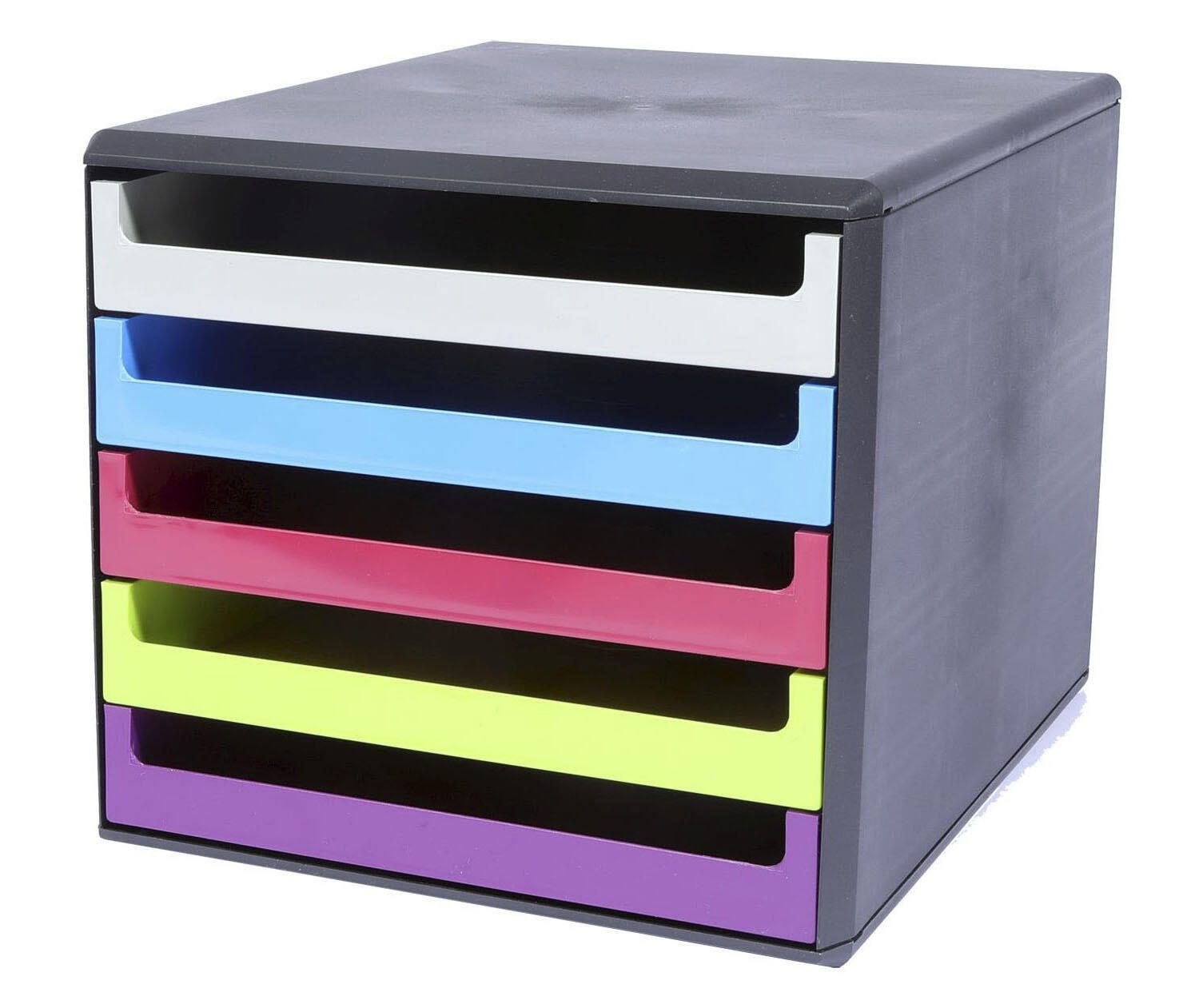 Hergestellt aus robustem Kunststoff ist diese Schubladenbox langlebig und pflegeleicht. Ihre offene Ausführung ermöglicht einen leichten Zugriff auf Dokumente und Büromaterialien. Mit fünf Fächern/Schüben bietet sie ausreichend Platz zur Sortierung und Aufbewahrung.