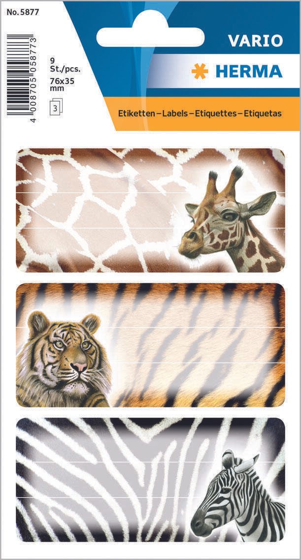 Die HERMA Schuletiketten Afrikanische Tiere sind eine kreative und farbenfrohe Möglichkeit, um Schulmaterialien individuell zu kennzeichnen. Jedes Pack enthält neun selbstklebende Etiketten, die mit lebendigen Motiven afrikanischer Tiere bedruckt sind. Diese Schuletiketten aus hochwertigem Papier sind nicht nur praktisch, sondern auch ein echter Hingucker. Die mehrfarbigen Designs bringen Freude und Abwechslung in den Schulalltag und machen das Beschriften von Heften, Büchern oder anderen Materialien zu einem spaßigen Erlebnis.