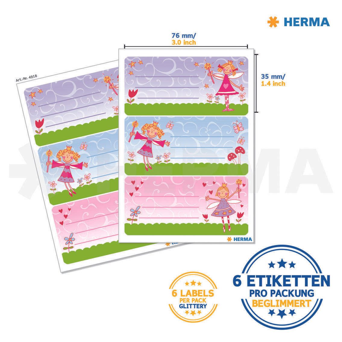 HERMA Schuletiketten Prinzessin 1 Pack = 6 St.