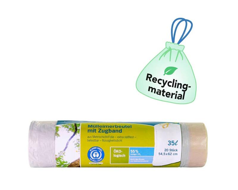 - Bestehen zu 100% aus regeneriertem Kunststoff