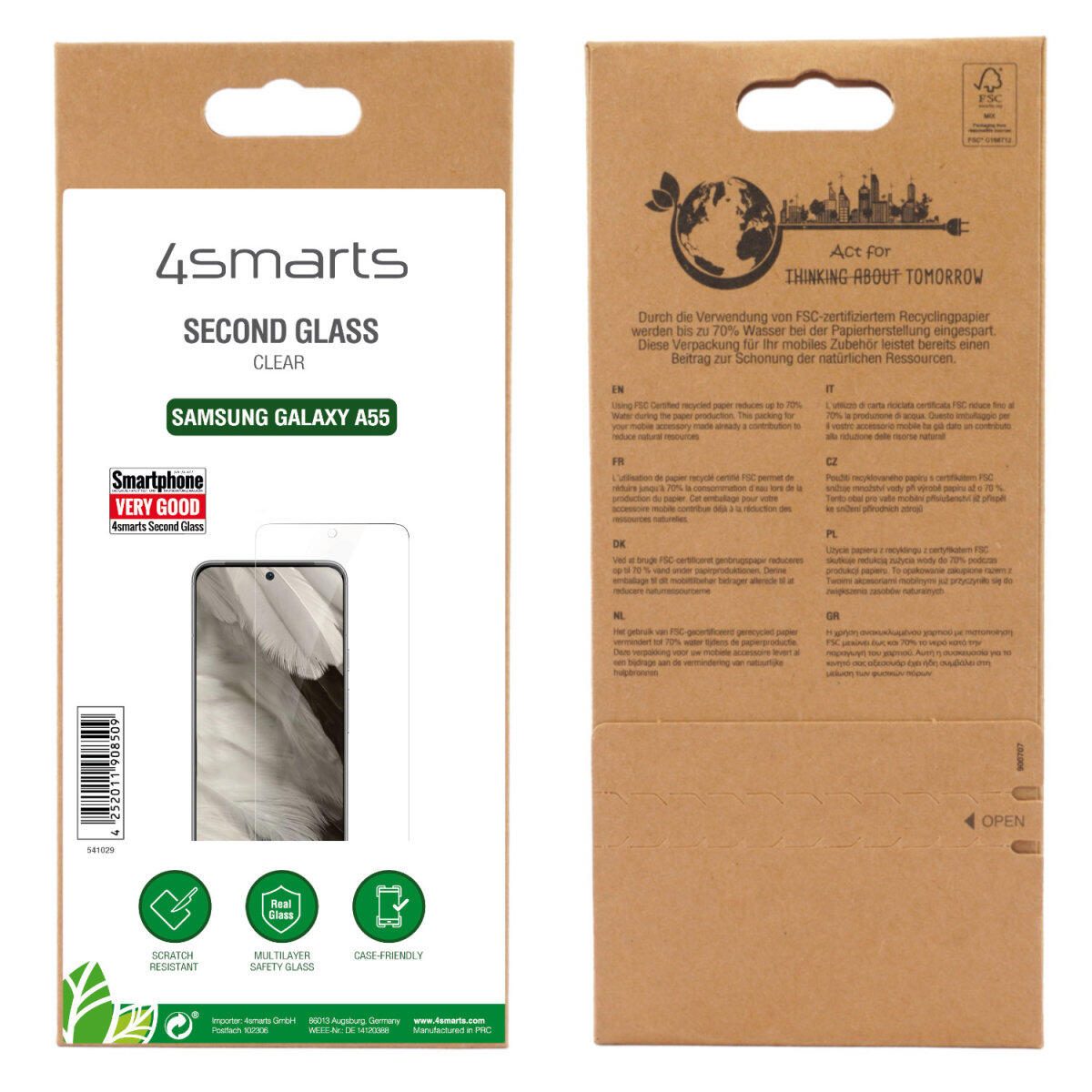 4smarts Second Glass für Samsung Galaxy A55 Gehärtetes Glas, Case Friendly, Crystal Clear, Transparent