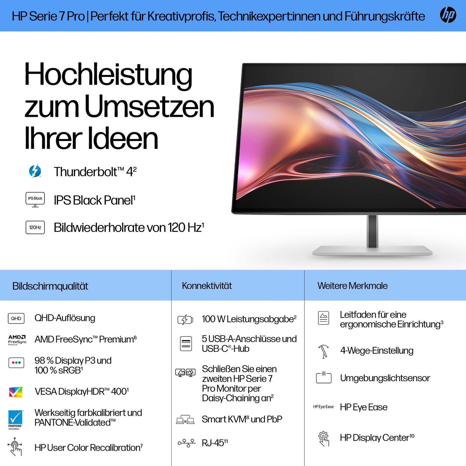 HP Serie 7 Pro 727pu QHD Thunderbolt 4 Monitor 68,6 cm (27 Zoll) 2560 x 1440 Pixel, IPS, 5 ms, 120 Hz, DisplayPort, HDMI