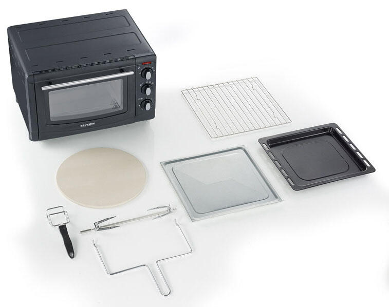 Der SEVERIN Minibackofen TO 2068 vereint Funktionalität und modernes Design in einem kompakten Format, das perfekt für jede Küche geeignet ist. Mit seiner eleganten schwarzen Farbe fügt sich dieser Minibackofen harmonisch in dein Küchenambiente ein und wird schnell zum unverzichtbaren Küchenhelfer. Hergestellt aus hochwertigem Metall, bietet der TO 2068 nicht nur eine ansprechende Optik, sondern auch eine hohe Langlebigkeit und Stabilität. Mit einem Außenmaß von 44,0 x 39,0 x 29,5 cm ist er ideal für kleine Küchen oder als zusätzlicher Ofen für größere Haushalte. Die Lieferung des Minibackofens umfasst alles, was du für den sofortigen Einsatz benötigst: ein Grillrost, ein Backblech, ein Krümelblech sowie ein Drehspieß und ein Pizzastein. Dies ermöglicht dir eine vielseitige Zubereitung von Speisen, egal ob du Pizza, Aufläufe oder knusprige Brötchen backen möchtest. Der integrierte Pizzastein sorgt dafür, dass deine Pizzen perfekt gebacken werden, während der Drehspieß eine gleichmäßige Garung von Fleisch und Geflügel ermöglicht. Dank seiner kompakten Größe und der umfangreichen Ausstattung ist der SEVERIN Minibackofen TO 2068 nicht nur praktisch, sondern auch äußerst benutzerfreundlich. Du kannst verschiedene Gerichte gleichzeitig zubereiten und dabei Platz in deiner Küche sparen. Mit diesem Minibackofen kannst du deine Kochkünste erweitern und neue Rezepte ausprobieren. Die einfache Handhabung und die vielfältigen Einsatzmöglichkeiten machen den SEVERIN Minibackofen TO 2068 zu einem idealen Begleiter für alle, die gerne kochen und backen.Technische Daten