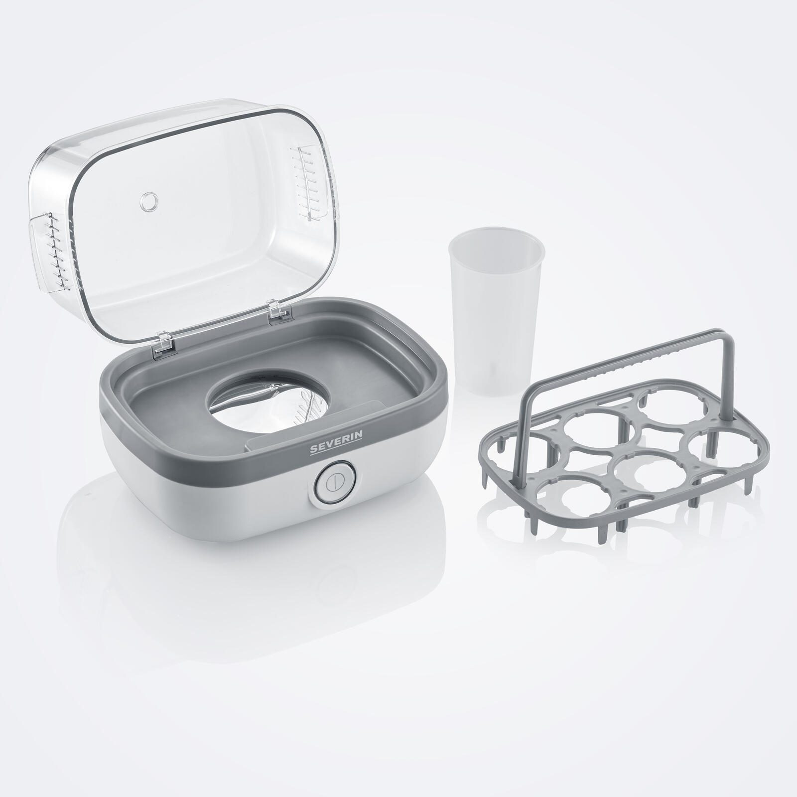 Der SEVERIN 3164 Eierkocher ist die perfekte Lösung für alle, die ihre Eier schnell und einfach zubereiten möchten. Mit einer Kapazität von bis zu 6 Eiern bietet dieser Eierkocher ausreichend Platz für ein ausgedehntes Frühstück oder ein schnelles Mittagessen. Dank seines durchdachten Designs aus hochwertigem Kunststoff in ansprechendem Weiß/Grau fügt sich der Eierkocher harmonisch in jede Kücheneinrichtung ein und ist gleichzeitig leicht zu reinigen. Die Leistungsaufnahme von nur 420 W sorgt dafür, dass der SEVERIN Eierkocher energieeffizient arbeitet, ohne Kompromisse bei der Kochleistung einzugehen. Du kannst sicher sein, dass deine Eier immer perfekt gegart werden, ganz gleich, ob du sie weich, mittel oder hart magst. Der Eierkocher ist einfach zu bedienen: Fülle einfach die benötigte Menge Wasser in den Messbecher, lege die Eier auf die spezielle Halterung und schalte das Gerät ein. Ein akustisches Signal informiert dich, sobald die Eier den gewünschten Gargrad erreicht haben. Die Kombination aus Funktionalität und ansprechendem Design macht den SEVERIN 3164 Eierkocher zu einem unverzichtbaren Küchengerät für jeden Haushalt. Ob für das gemütliche Frühstück am Wochenende oder das schnelle Abendessen unter der Woche – mit diesem Eierkocher gelingt dir die Zubereitung von Eiern im Handumdrehen. Vertraue auf die Qualität und Zuverlässigkeit von SEVERIN und genieße perfekt gekochte Eier, wann immer du möchtest.Technische Daten