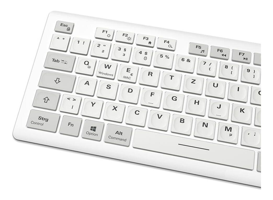 Die OfficePal K30W lässt sich dank doppelt-belegter Tasten nicht nur Windows-PCs, sondern auch an Macs betreiben.