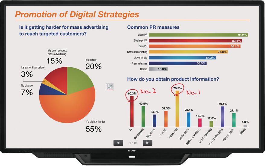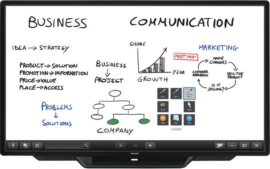 Die hoch gelobte, intelligente und intuitive Pen-Software eröffnet neue Wege für das Brainstorming, Ideen mitteilen und Entscheidungen zu unterstützen. Das leistungsfähige, flexible und technologisch innovative Sharp BIG PAD PN-80TC3 stellt eine überragende Zusammenarbeitsplattform zur Verfügung, um Kreativität zu fördern, die Produktivität von Besprechungen zu erhöhen und die effektive Entscheidungsfindung zu verbessern.