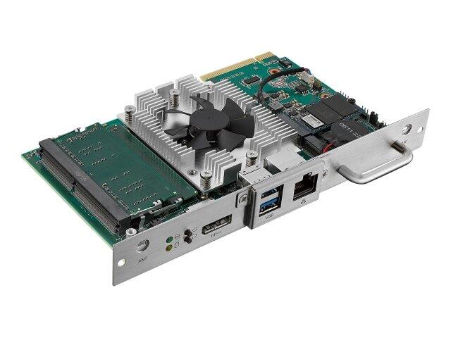 - Rückseitig SDM Anschlüsse: DisplayPort, TMDS, USB, UART, i2C, 3.3. VSB, 12V