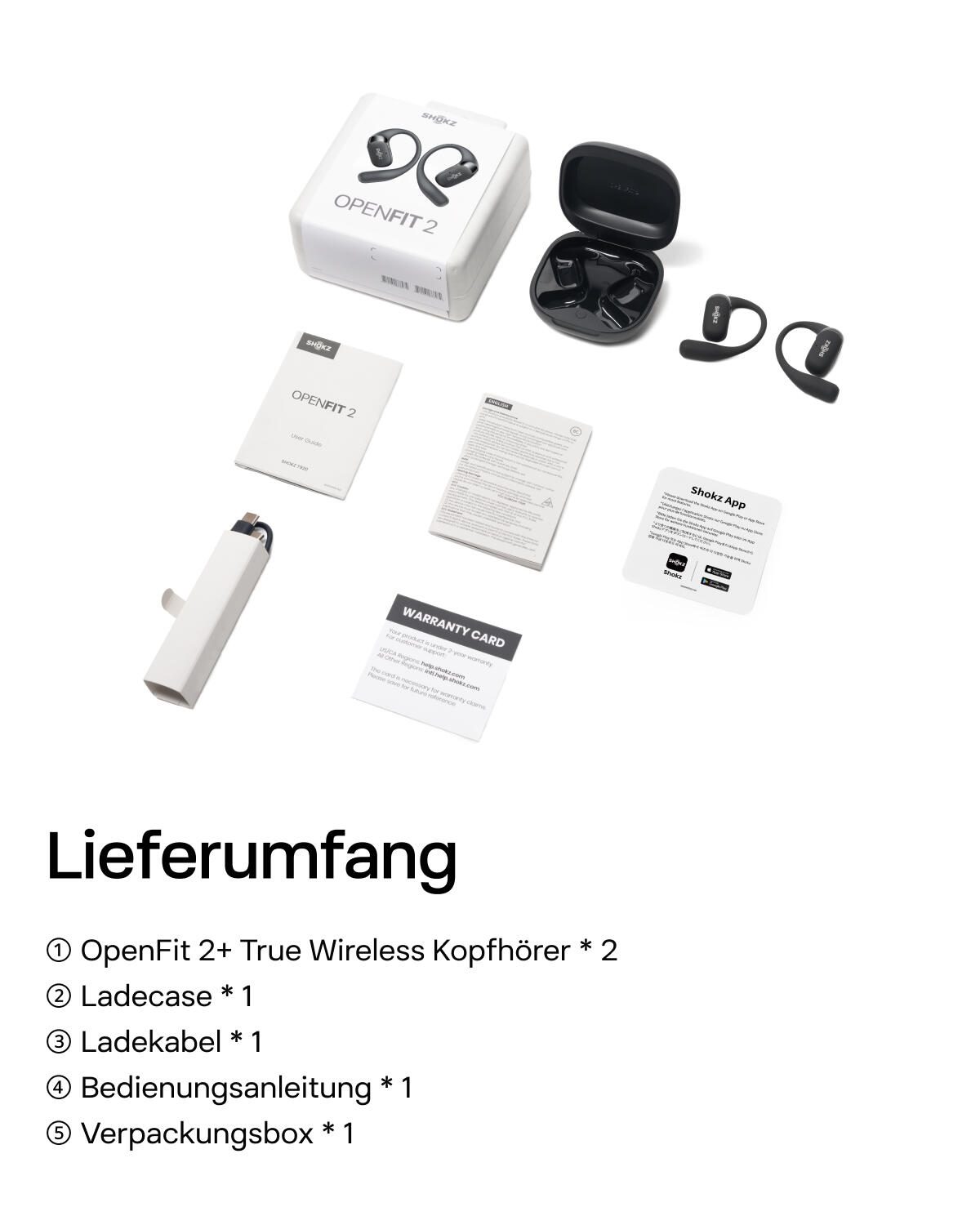 SHOKZ OpenFit 2+ True Wireless-Kopfhörer mit Mikrofon - schwarz