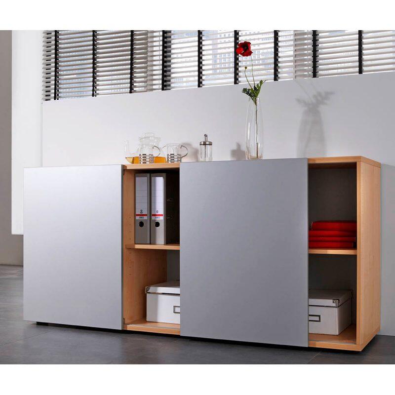 Ein besonderes Merkmal des HAMMERBACHER Sideboards ist die schlichte Eleganz, die sich harmonisch in verschiedene Einrichtungsstile einfügt. Die Kombination aus der hellen Buchenoptik und dem silbernen Finish verleiht deinem Raum eine freundliche und einladende Atmosphäre. Das Sideboard ist nicht abschließbar, was es zu einer praktischen Wahl für alle macht, die schnellen Zugriff auf ihre Dinge wünschen, ohne auf Sicherheit verzichten zu müssen.