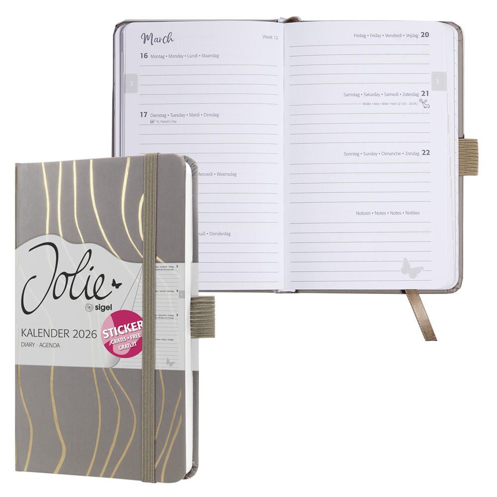 Der SIGEL Buchkalender Jolie im Format DIN A6 ist ein handlicher Wochenkalender, der sich ideal für die übersichtliche Planung von Terminen und Aufgaben eignet. Mit den Maßen 9,5 x 15,0 cm passt er bequem in jede Tasche und ist somit ein praktischer Begleiter für den Alltag. Der Kalender ist Teil der Serie „Jolie“ und zeichnet sich durch eine klare Struktur zur Wochenplanung aus.