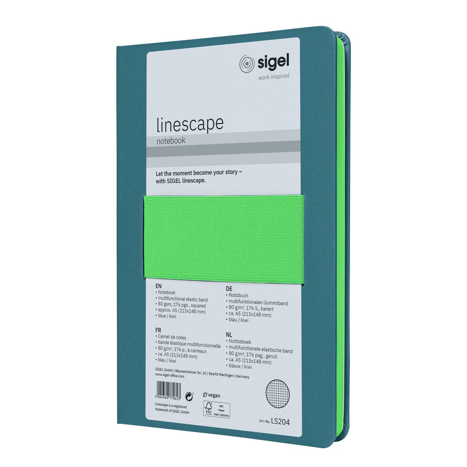 SIGEL Linescape Notizbuch DIN A5 kariert, Anzahl der Seiten: 176