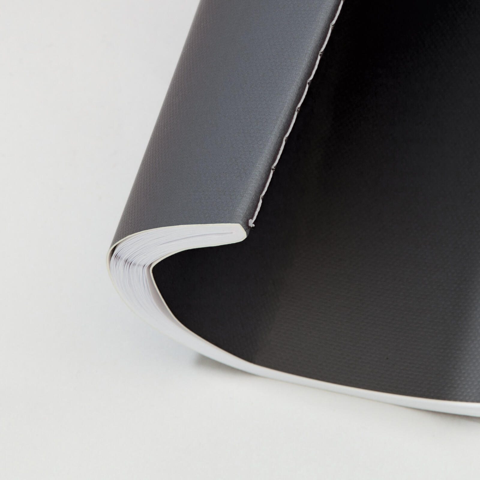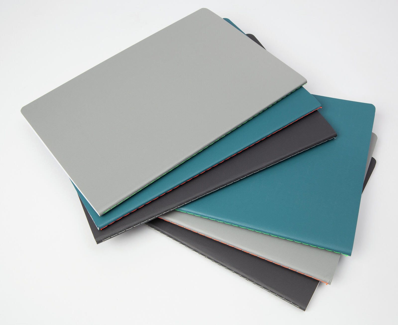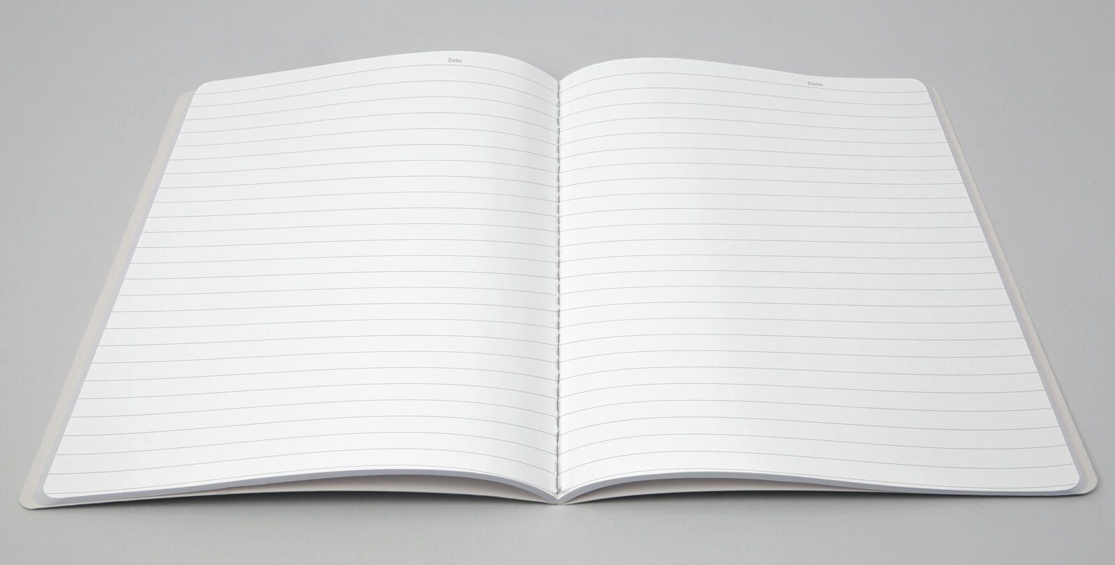 Das Material der Notizhefte besteht aus stabilem Karton, der in zwei dezenten Farbtönen erhältlich ist: dunkelgrau und hellgrau. Die Seiten sind aus weißem, holzfreiem Papier gefertigt, das eine angenehme Schreiboberfläche bietet und zugleich umweltfreundlich ist. Die Bindung erfolgt durch eine Fadensiegelung, die für eine sichere und langlebige Verbindung der Seiten sorgt.