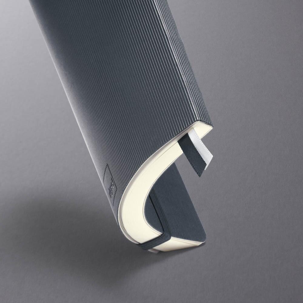 - Flexibler Softcover-Einband mit geriffelter Kunststoff-Oberfläche