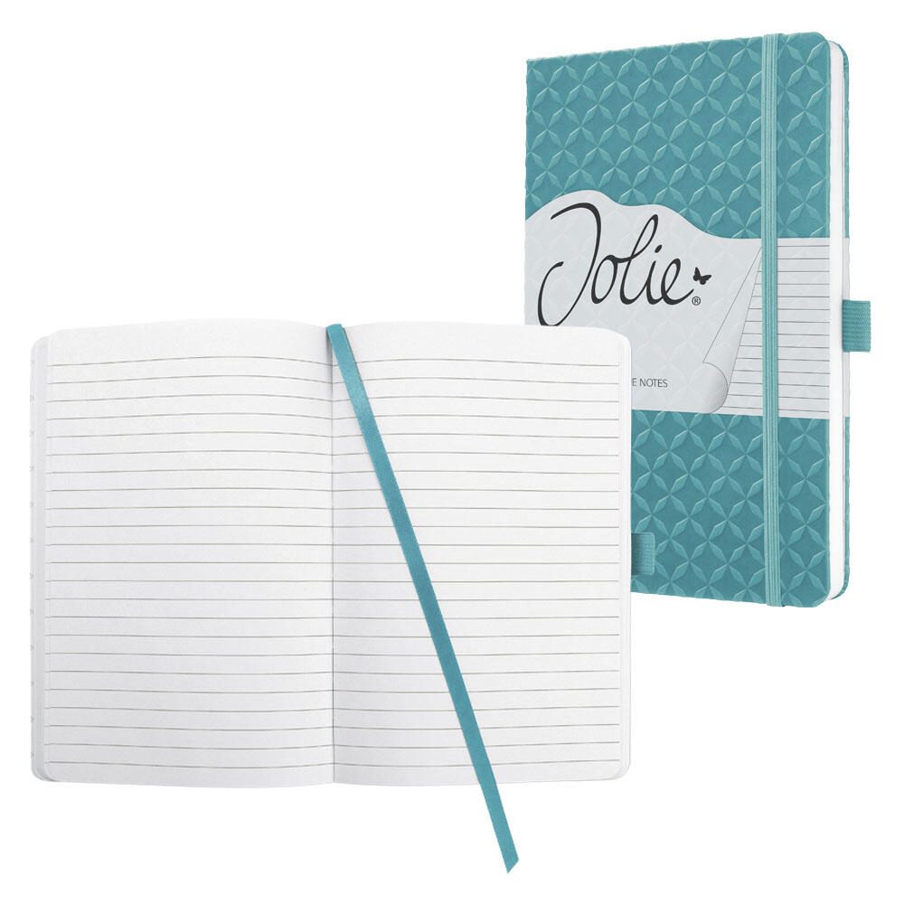 Das SIGEL Notizbuch Sigel Notizbuch Jolie ist ein stilvolles und praktisches Notizbuch in aqua grün, das perfekt für unterwegs geeignet ist. Mit seinem festen Gummizugverschluss ist es ideal, um deine Gedanken und Ideen sicher aufzubewahren.