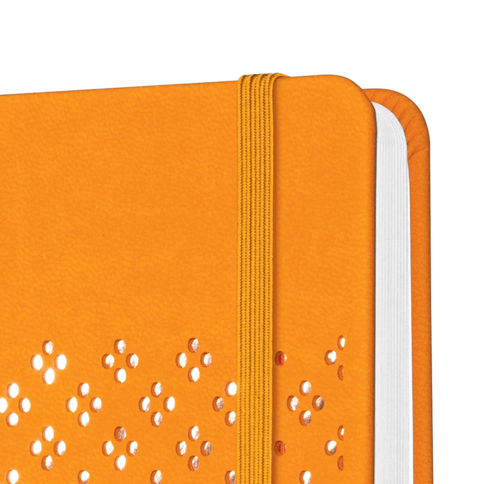 Der Gummizugverschluss sorgt dafür, dass deine Aufzeichnungen sicher verwahrt sind. Das feste Notizbuch besteht aus hochwertigem Karton in einem lebhaften mangoorangenen Farbton, der sofort ins Auge sticht.