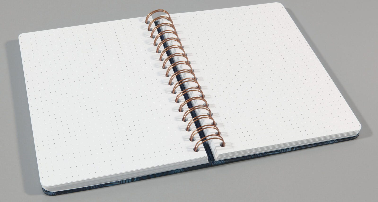 Die Lineatur des Notizbuches ist im praktischen punktraster gehalten, was dir eine klare Struktur und Flexibilität beim Schreiben ermöglicht. Das weiße, holzfreie Papier garantiert ein angenehmes Schreibgefühl und sorgt für eine optimale Darstellung deiner Ideen. Zudem ist das Papier abwischbar, sodass du auch mal einen Fehler korrigieren kannst, ohne dass es unschön aussieht.