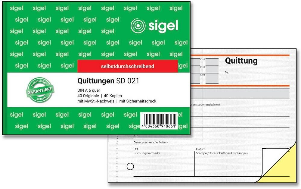 Sigel - Quittung - 40 Blatt - A6 - Kopie