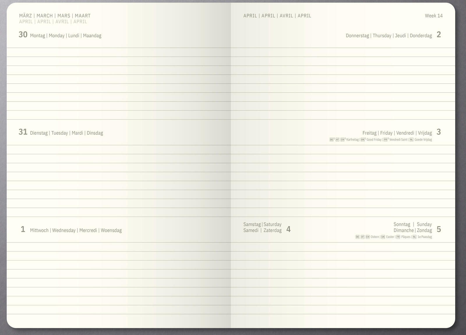 Das robuste Kunststoffcover schützt die Inhalte zuverlässig und ist mit einem Gummizug als Verschluss ausgestattet, der den Kalender sicher zusammenhält. Die Bindung erfolgt durch eine Fadensiegelung, die für eine stabile und langlebige Verbindung der Seiten sorgt. So bleibt der Kalender auch bei häufiger Nutzung formstabil.