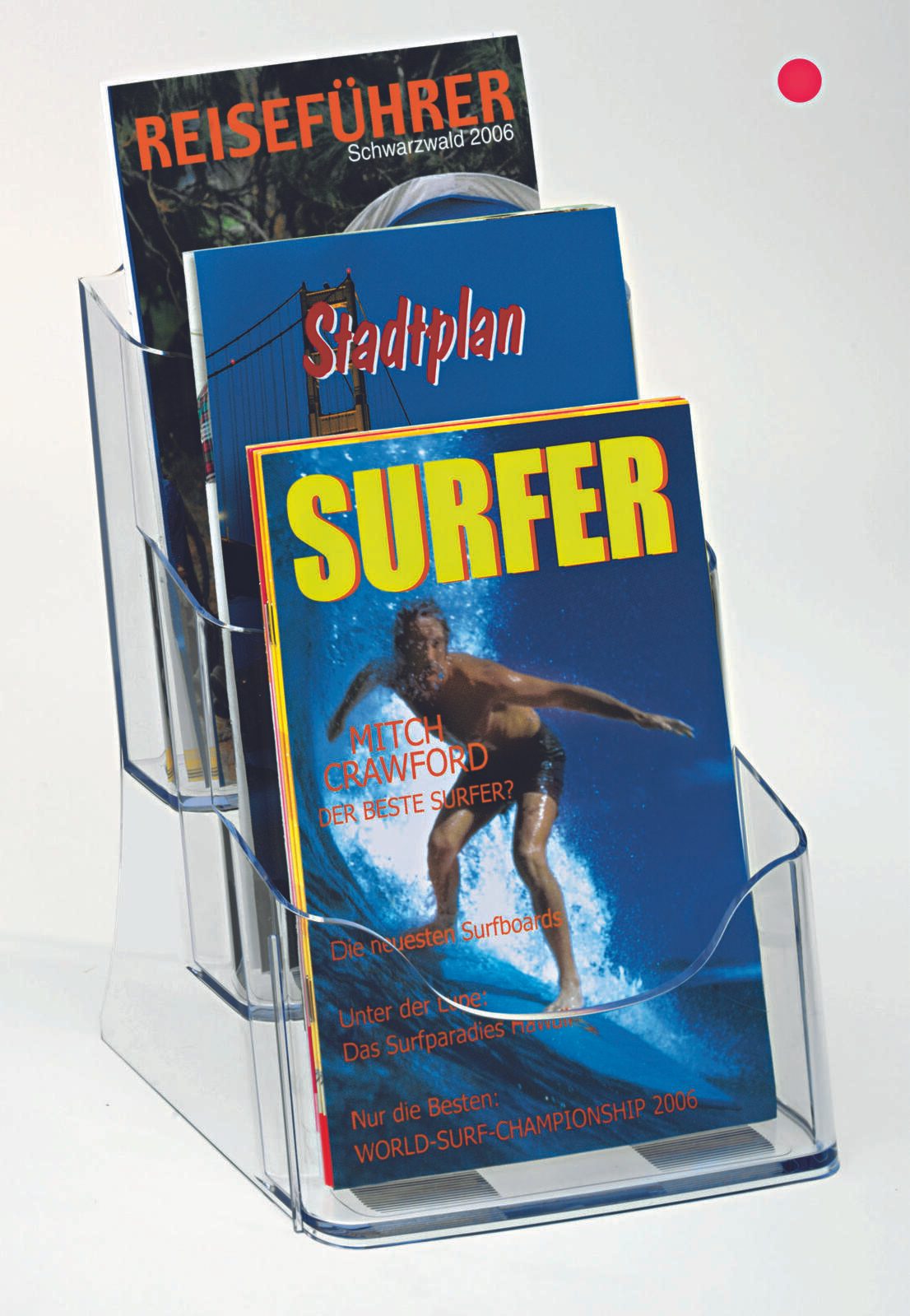 Der SIGEL Tischprospekthalter in A5-Format besticht nicht nur durch sein transparentes Design, sondern auch durch seine hochwertige Verarbeitung aus Acryl. Mit drei Fächern bietet er genügend Platz für deine Prospekte oder Flyer.