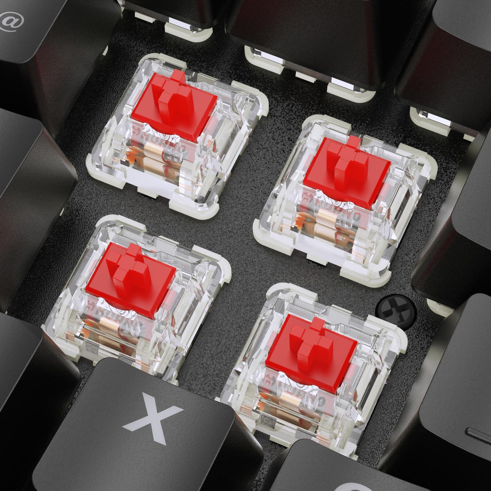 Schnellauslösende SchalterIn der SKILLER SGK36W kommen rote Schalter von Huano zum Einsatz, die sich dank ihrer linearen Schaltercharakteristik ohne Feedback besonders gut fürs Gaming eignen. |