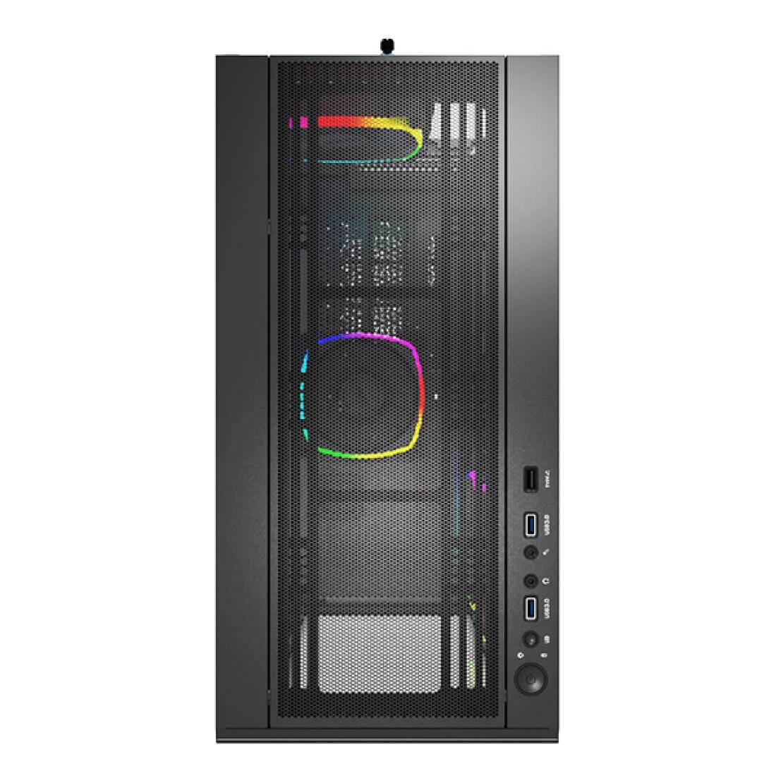 Dank der integrierten Front- und Seitenwand können Benutzer das gesamte Innere auf den ersten Blick erkennen. Das feine Netz, das die Unterseite der Frontplatte abdeckt, erstreckt sich bis zur Netzteilkammer mit vorinstallierten ARGB-Lüftern, die die Schönheit dieses Meisterwerks noch verstärken.