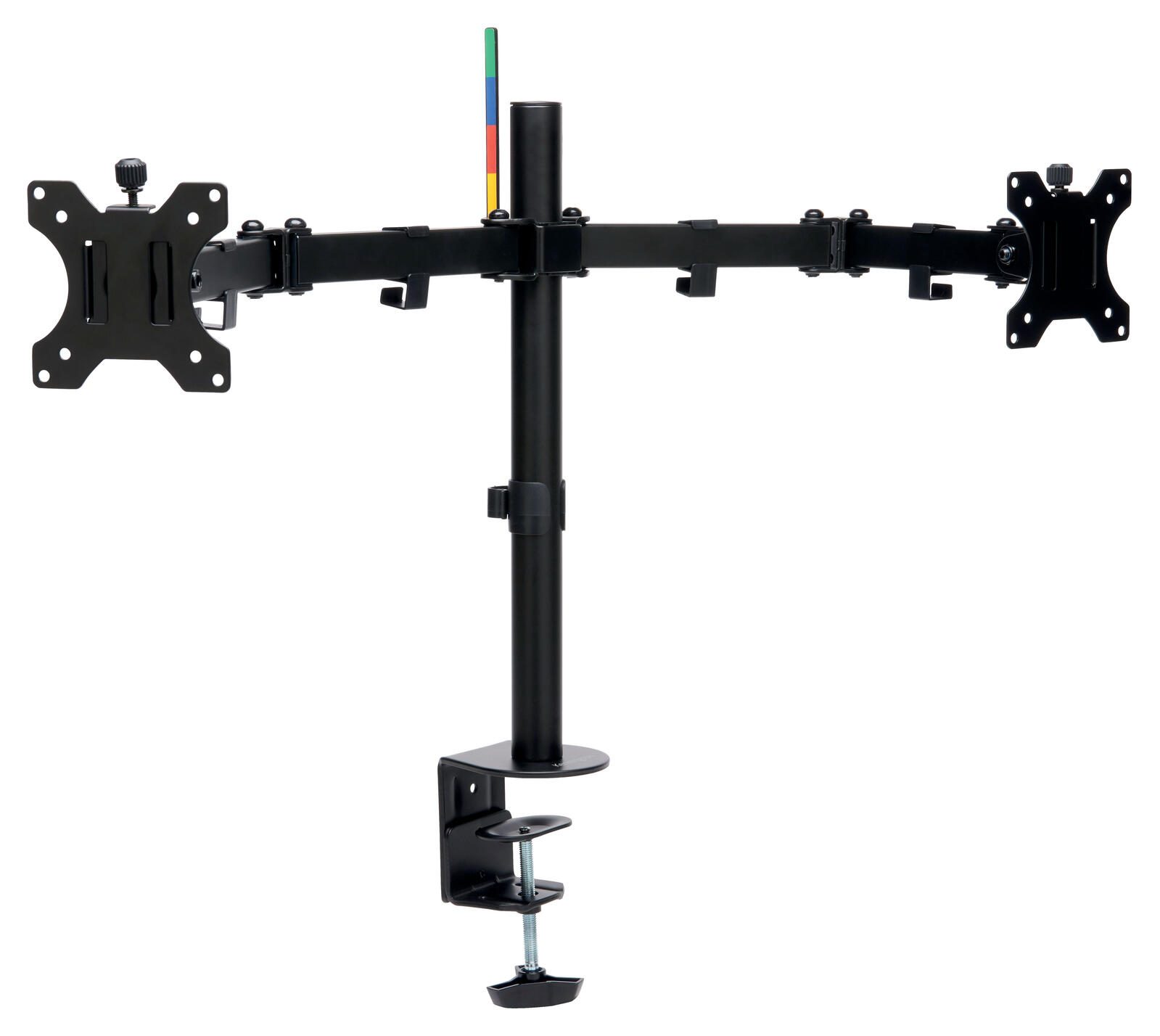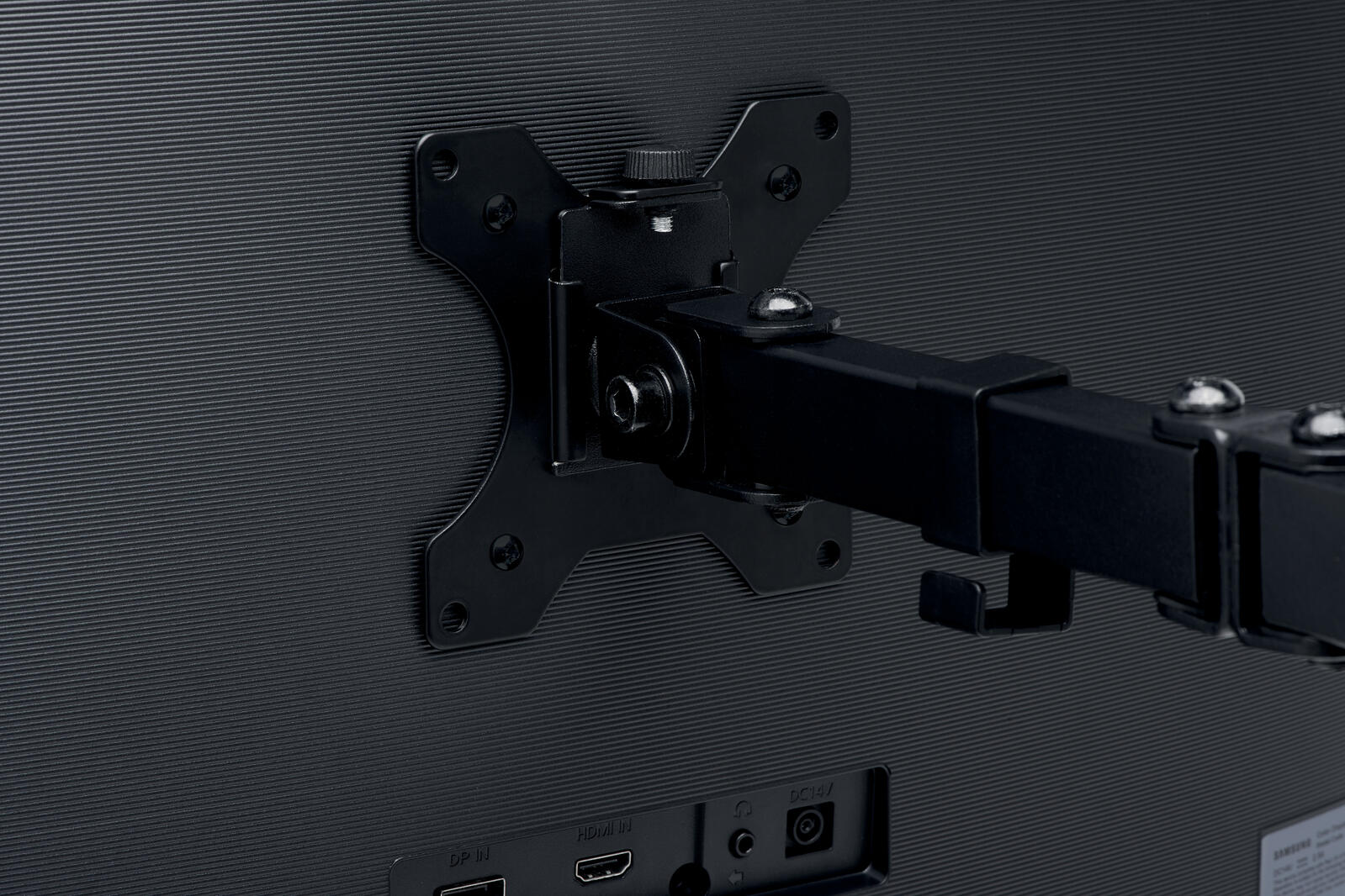 Die Halterung ist vielseitig einsetzbar und eignet sich für verschiedene Platzierungsoptionen, einschließlich Tischmontage, C-Zwinge und Tischbohrung. Sie unterstützt Monitore mit einer maximalen Display-Größe von bis zu 81,3 cm (32 Zoll) und ist mit VESA-Halterungen von 100 x 100 mm und 75 x 75 mm kompatibel. Die Möglichkeit, die Monitore in der Höhe, Neigung und Rotation anzupassen, sorgt für eine ergonomische Ausrichtung, die den Komfort während der Arbeit erhöht.