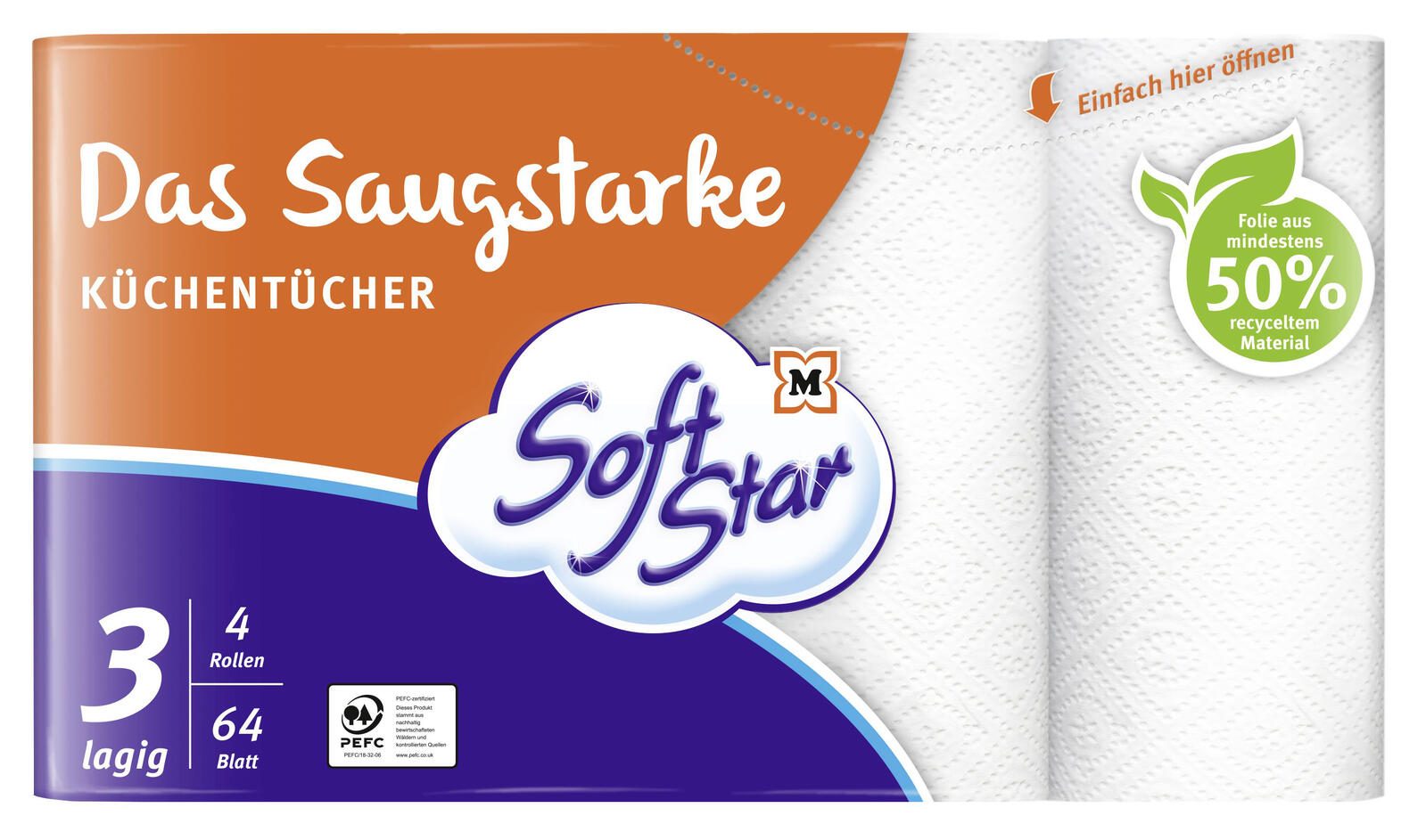 Soft Star Küchenrollen Das Saugstarke 3-lagig, 4 Rollen