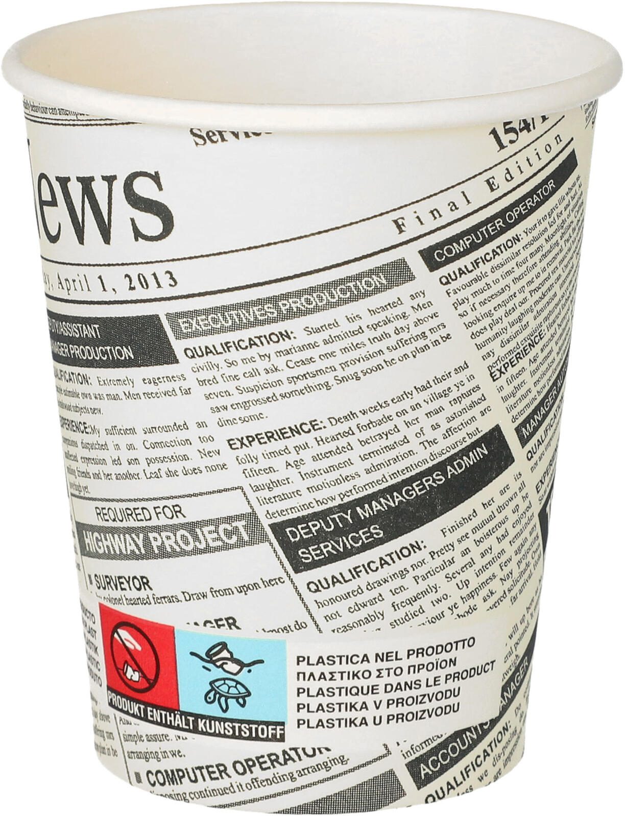 STARPAK Newsprint Einweg-Kaffeebecher 8 cm 0,2 l weiß