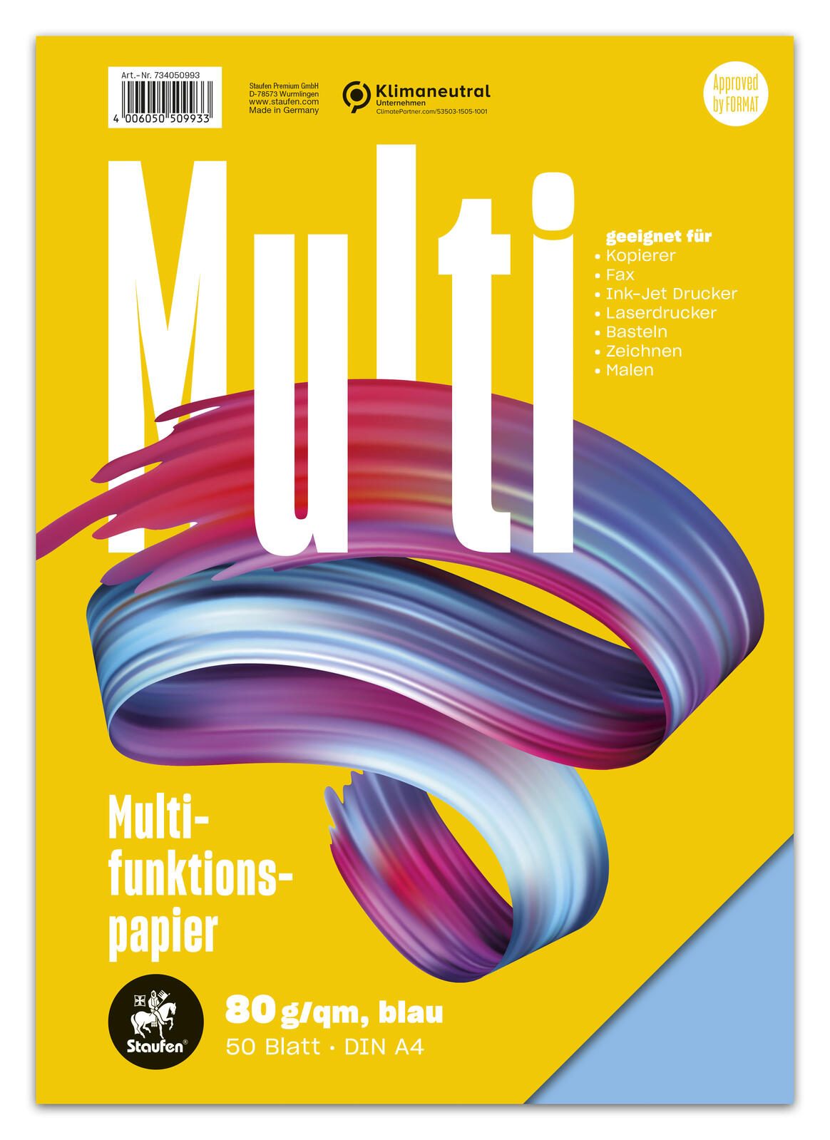 Das Staufen® Kopierpapier DIN A4 80 g/m² überzeugt durch seine hochwertige Qualität und Vielseitigkeit. Mit einem ansprechenden blauen Farbton ist es nicht nur funktional, sondern auch ästhetisch ansprechend. Dieses Papierformat eignet sich ideal für alle gängigen Kopierer, Drucker und Fax-Geräte, wodurch es sich perfekt für den Einsatz im Büro oder zu Hause eignet. Mit einem Gewicht von 80 g/m² bietet das Kopierpapier eine optimale Stabilität und sorgt dafür, dass deine Ausdrucke professionell und hochwertig wirken. Die matte Oberfläche ermöglicht eine hervorragende Druckqualität, egal ob du mit einem Laser- oder Inkjet-Drucker arbeitest. So kannst du sicher sein, dass deine Dokumente klar und deutlich dargestellt werden. Das Staufen® Kopierpapier ist nicht nur funktional, sondern auch umweltbewusst hergestellt. Es ist holzfrei und wurde elementar chlorfrei gebleicht (ECF), was bedeutet, dass es unter Berücksichtigung umweltschonender Verfahren produziert wurde. Dies macht es zu einer verantwortungsvollen Wahl für alle, die Wert auf Nachhaltigkeit legen. In einer Packung sind 50 Blatt enthalten, die dir ausreichend Material für deine Druckbedürfnisse bieten. Egal, ob du wichtige Geschäftsdokumente, Präsentationen oder kreative Projekte erstellen möchtest, dieses Kopierpapier unterstützt dich dabei, deine Ideen bestmöglich umzusetzen. Vertraue auf die Qualität von Staufen® und erlebe, wie dieses Kopierpapier deine Druckergebnisse auf ein neues Level hebt.Technische Daten