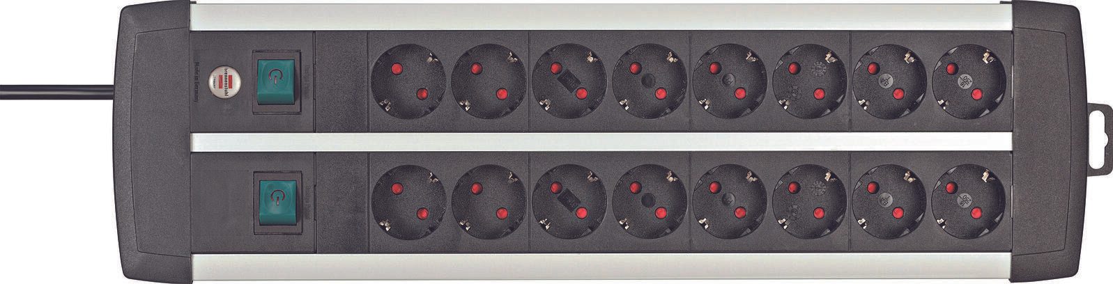 Die Steckdosenleiste16fach Aluline von brennenstuhl kombiniert Funktionalität mit einem ansprechenden Design. Dank des silbernen Farbtons fügt sie sich nahtlos in jede Umgebung ein. Trotz ihrer robusten Bauweise ist die Steckdosenleiste leicht und handlich.