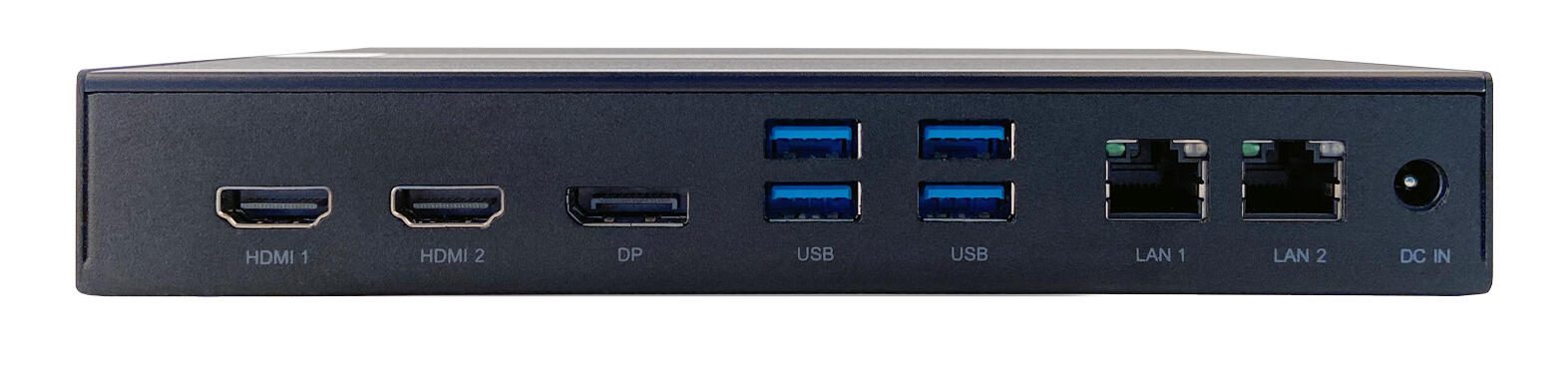 - Anschlüsse: 6x USB 3.2 (Gen 1) Typ-A, 2x HDMI 1.4/2.0, VGA, DisplayPort 1.2, 2x LAN (RJ45)