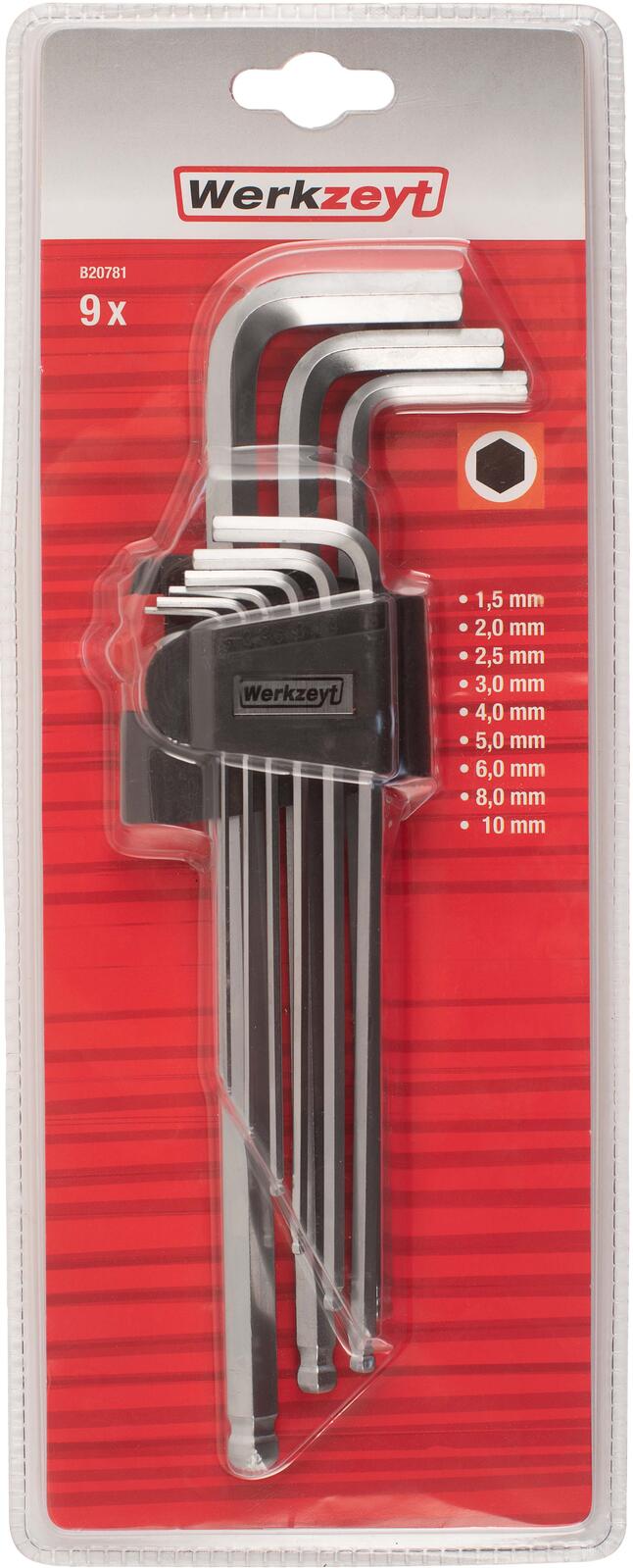 Der Sechskantschlüssel-Satz B20781 ist ein unverzichtbares Werkzeug für jeden Handwerker und Hobbybastler. Mit einem Gesamtinhalt von 9 Teilen bietet dieser Satz eine umfassende Auswahl an Sechskantschlüsseln, die in verschiedenen Größen erhältlich sind. Die silberne Farbe verleiht den Schlüsseln nicht nur ein modernes Aussehen, sondern sorgt auch für eine hohe Sichtbarkeit während der Arbeit. Hergestellt aus hochwertigem Chrom-Vanadium-Stahl, zeichnet sich dieser Sechskantschlüssel-Satz durch seine außergewöhnliche Langlebigkeit und Robustheit aus. Chrom-Vanadium-Stahl ist bekannt für seine Fähigkeit, auch unter extremen Bedingungen standzuhalten, was bedeutet, dass Sie sich auf die Qualität und die Leistung dieser Werkzeuge verlassen können. Die 6-Kant Schraubenprofile sind optimal gestaltet, um ein Abrutschen während des Einsatzes zu verhindern und die Kraftübertragung zu maximieren. Die kompakte und handliche Bauweise des Sechskantschlüssel-Satzes ermöglicht eine einfache Handhabung und Lagerung. Ob für Reparaturen im Haushalt, beim Auto oder in der Werkstatt, dieses Set bietet Ihnen die Flexibilität, die Sie benötigen, um verschiedene Aufgaben effizient zu erledigen. Die unterschiedlichen Größen der Schlüssel ermöglichen es Ihnen, für nahezu jede Schraube die passende Lösung zu finden, was Zeit und Mühe spart. Dank der hochwertigen Materialien und der durchdachten Konstruktion ist der Sechskantschlüssel-Satz B20781 nicht nur ein praktisches Werkzeug, sondern auch eine langfristige Investition in Ihre Werkzeugausstattung. Er eignet sich sowohl für professionelle Anwendungen als auch für den gelegentlichen Gebrauch zu Hause. Verlassen Sie sich auf die Qualität und Funktionalität dieses Sets, um Ihre Projekte erfolgreich abzuschließen.Technische Daten