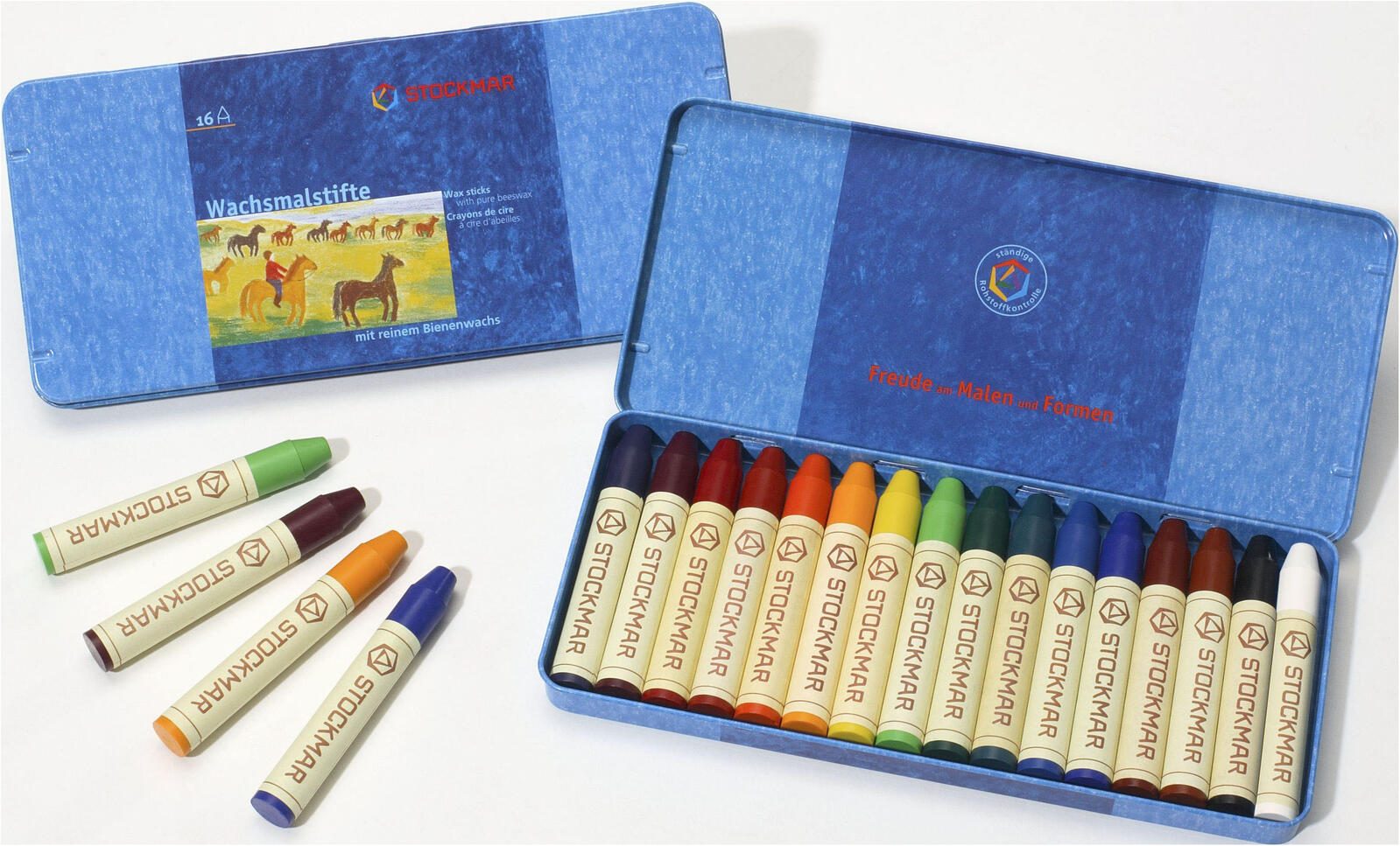Die STOCKMAR Wachsmalstifte im praktischen Metall-Etui bieten Ihnen eine hochwertige Auswahl an 16 lebendigen Farben, die speziell für kreative Köpfe entwickelt wurden. Diese Stifte zeichnen sich durch ihre wasserfeste Eigenschaft aus, wodurch Ihre Kunstwerke auch nach dem Trocknen strahlend und langlebig bleiben. Die Palette umfasst eine Vielzahl von Farbtönen, darunter karminrot, zinnoberrot, orange, goldgelb, zitronengelb, gelbgrün, grün, blaugrün, blau, ultramarinblau, blauviolett, rotviolett, rotbraun, gelbbraun, schwarz und weiß. Diese Vielfalt ermöglicht es Ihnen, Ihre Fantasie auszuleben und jedem Kunstwerk eine individuelle Note zu verleihen.