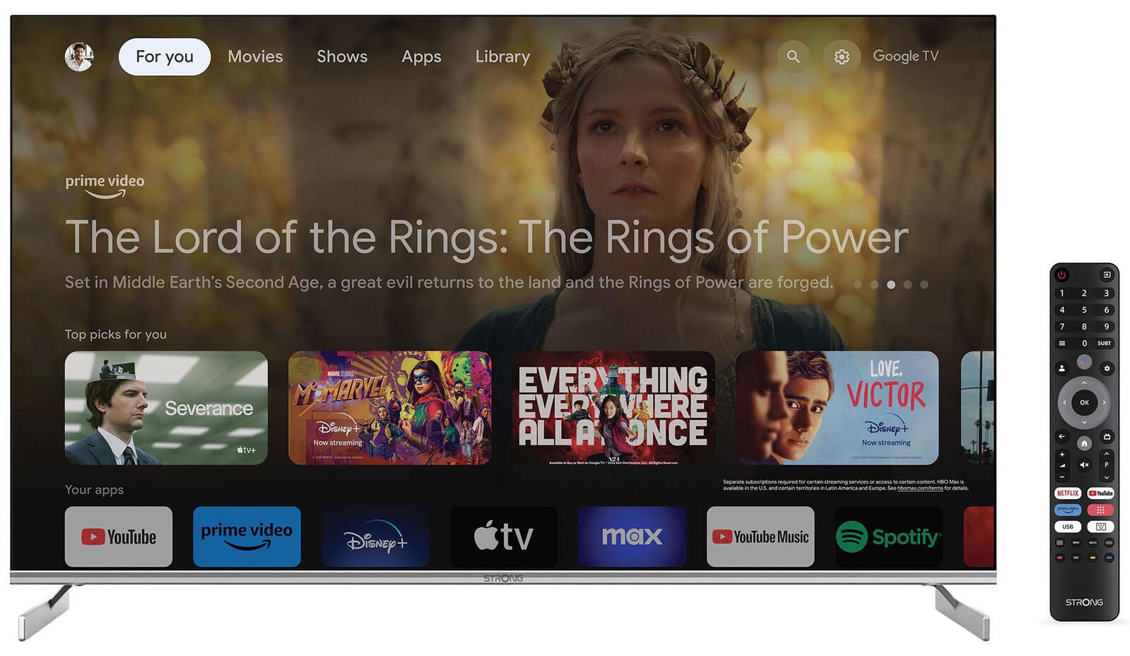 Die Serie SRT50UF8733 von STRONG setzt Maßstäbe in Sachen Bild- und Tonqualität. Tauche ein in ein faszinierendes Seherlebnis mit gestochen scharfen Kontrasten und lebendigen Farben dank der QLED-Technologie. Zusätzlich sorgt Dolby Atmos für einen herausragenden Klang, der dich mitten ins Geschehen versetzt.