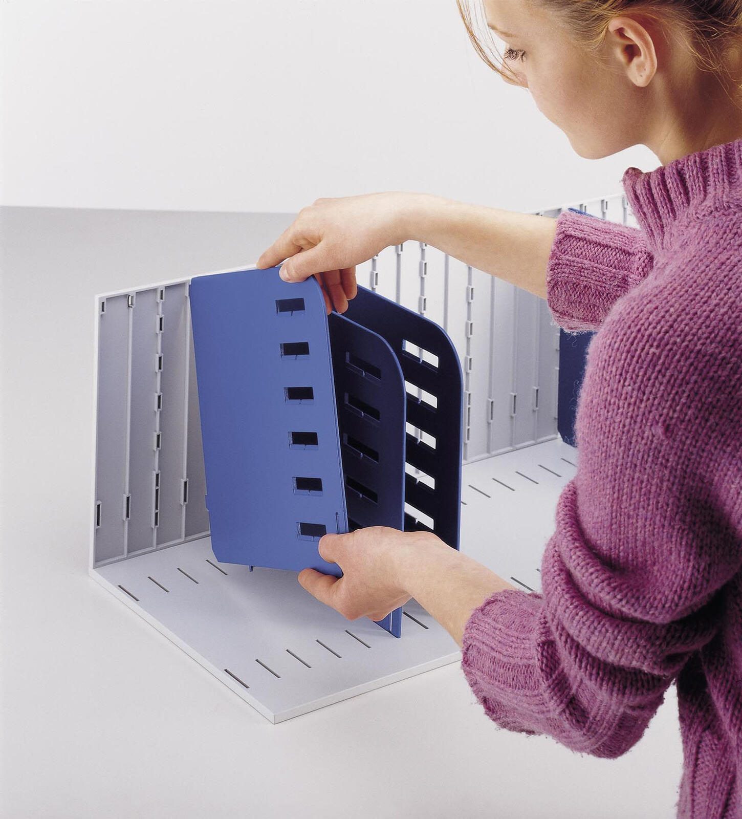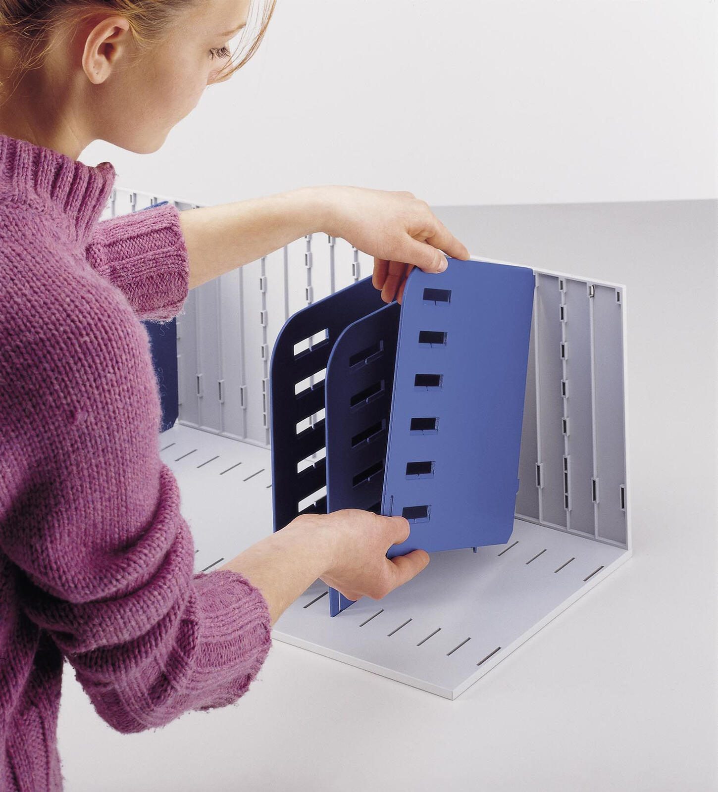 Die 8 Trennwände sorgen für eine klare Strukturierung und einfache Auffindbarkeit von Unterlagen. Auch die praktischen Griffmulden erleichtern das Handling der Sortierstation.
