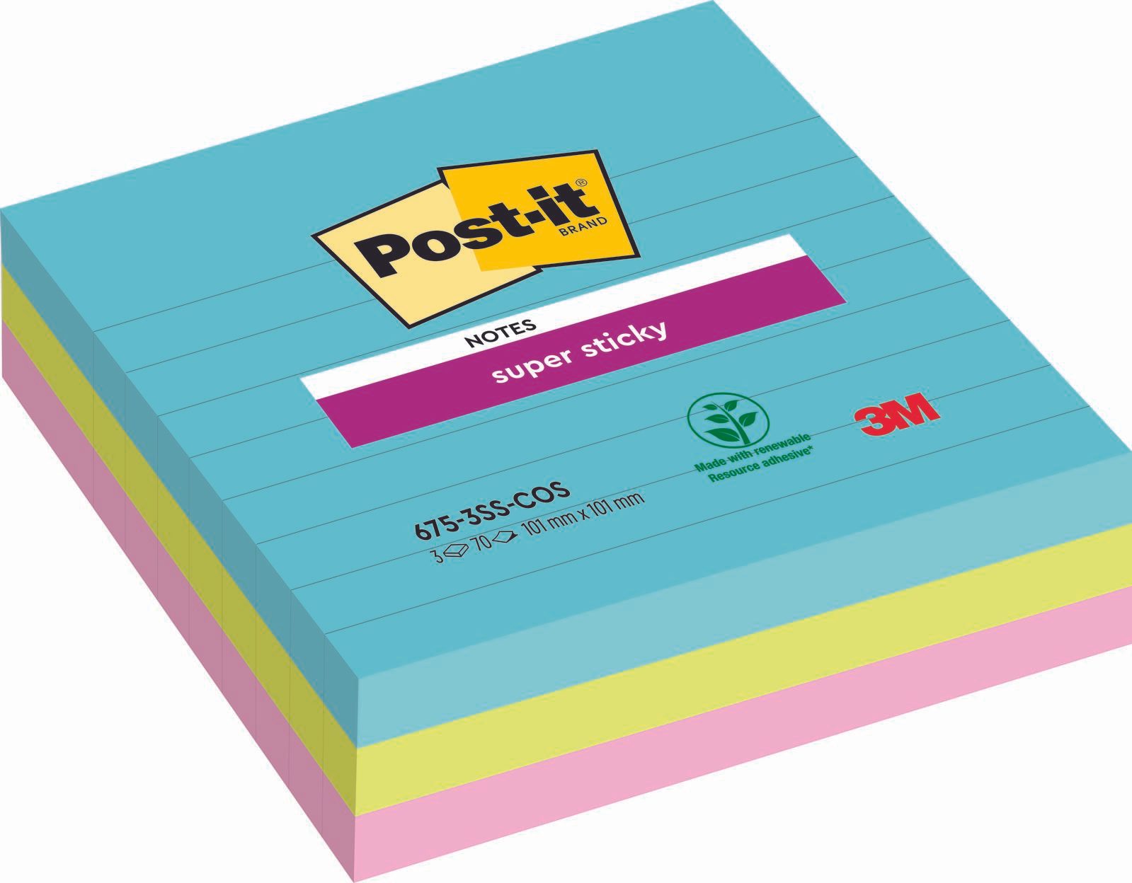 Die Post-it® Haftnotizen 10,0 x 10,0 cm sind die ideale Lösung für alle, die ihre Gedanken, Ideen und Erinnerungen schnell und unkompliziert festhalten möchten. Diese praktischen Haftnotizen kommen in einem Block mit 70 Blatt, sodass du immer genügend Platz hast, um deine Notizen zu machen. Mit einer Größe von 10,0 x 10,0 cm bieten sie ausreichend Fläche, um wichtige Informationen klar und deutlich zu notieren. Die Haftnotizen sind in einer farbsortierten Auswahl erhältlich, darunter lebendige Töne wie türkis, neongrün, neonpink und mohnrot. Diese auffälligen Farben sorgen nicht nur dafür, dass deine Notizen ins Auge fallen, sondern bringen auch Farbe und Freude in deinen Arbeitsalltag. Die selbstklebende Rückseite ermöglicht es dir, die Notizen problemlos an verschiedenen Oberflächen zu befestigen, sei es an deinem Schreibtisch, im Büro oder zu Hause. Die Ausführung als Block sorgt dafür, dass die Blätter leicht abgerissen werden können, ohne dass die vorherigen Blätter beschädigt werden. Diese Funktionalität macht die Post-it® Haftnotizen besonders benutzerfreundlich und effizient. Sie sind nicht nur für Notizen geeignet, sondern auch ideal für Erinnerungen, To-Do-Listen oder kreative Ideen, die du festhalten möchtest. Die Post-it® Haftnotizen sind aus hochwertigem Papier gefertigt, was ihre Langlebigkeit und Zuverlässigkeit garantiert. Sie sind eine hervorragende Wahl für Schüler, Studenten, Berufstätige und alle, die Wert auf Organisation und Struktur legen. Mit einer Packung, die drei Blöcke enthält, bist du bestens ausgestattet, um deine Gedanken jederzeit festzuhalten und zu organisieren.Technische Daten
