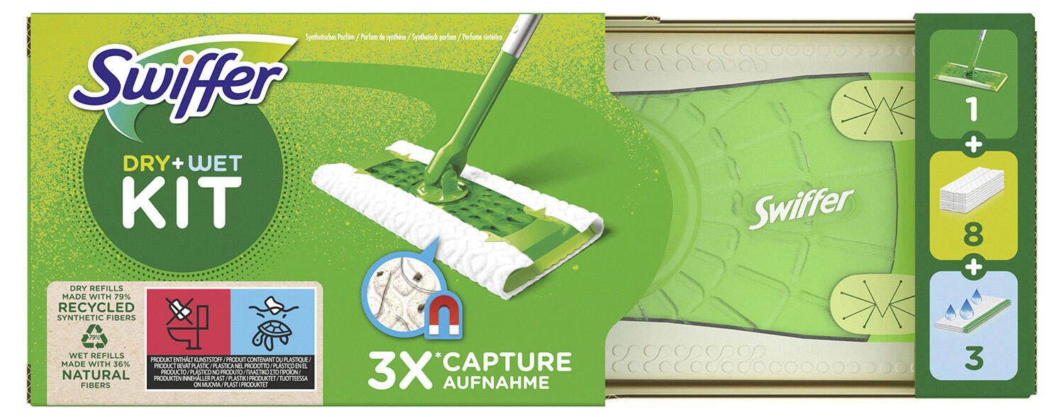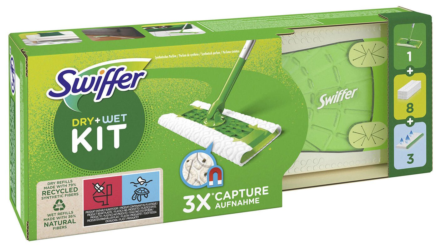 Swiffer Starter Set 1 Bodenwischer, 8 trockene Bodentücher, 3 feuchte Bodentücher