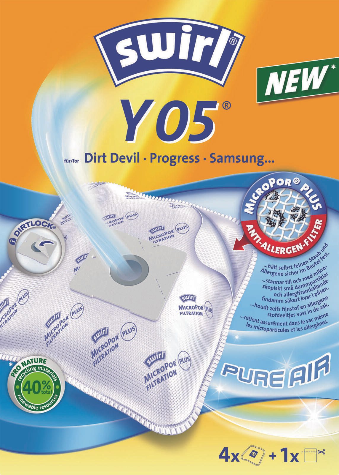 Die swirl® MicroPor® Plus Staubsaugerbeutel bieten eine erstklassige Lösung für die effektive und hygienische Staubaufnahme in deinem Zuhause. Hergestellt aus hochwertigem Spezial-Filtervlies, garantieren diese Staubsaugerbeutel eine optimale Filterleistung und sorgen dafür, dass selbst kleinste Staubpartikel zuverlässig aufgefangen werden. Mit einem Pack, das vier Beutel umfasst, bist du bestens ausgestattet, um die Reinigung deines Wohnraums effizient zu gestalten. Die swirl® MicroPor® Plus Staubsaugerbeutel sind vielseitig einsetzbar und passen zu einer Vielzahl von Staubsauger-Marken, darunter AEG, Electrolux, DirtDevil und viele andere. Diese breite Kompatibilität stellt sicher, dass du die Beutel für deine Geräte nutzen kannst, ohne dir Gedanken über die Passform machen zu müssen. Das Ersatzteil ist als Typ Y 05 klassifiziert und trägt die Bezeichnung „Swirl Beutel Airspace Y05“, was die Identifizierung und den Austausch erleichtert. Ein herausragendes Merkmal der swirl® MicroPor® Plus Staubsaugerbeutel ist ihre Fähigkeit, die Luftqualität in deinem Zuhause zu verbessern. Durch das spezielle Filtervlies wird nicht nur der Staub effizient aufgenommen, sondern auch die Bildung von Allergenen und unangenehmen Gerüchen reduziert. So kannst du sicher sein, dass du in einer sauberen und gesunden Umgebung lebst. Die Nutzung dieser Staubsaugerbeutel ist nicht nur praktisch, sondern auch umweltfreundlich, da sie eine lange Lebensdauer bieten und eine hohe Filtereffizienz garantieren. Dies bedeutet weniger häufiges Wechseln der Beutel und weniger Abfall. Entscheide dich für die swirl® MicroPor® Plus Staubsaugerbeutel und erlebe eine neue Dimension der Sauberkeit in deinem Zuhause.Technische Daten