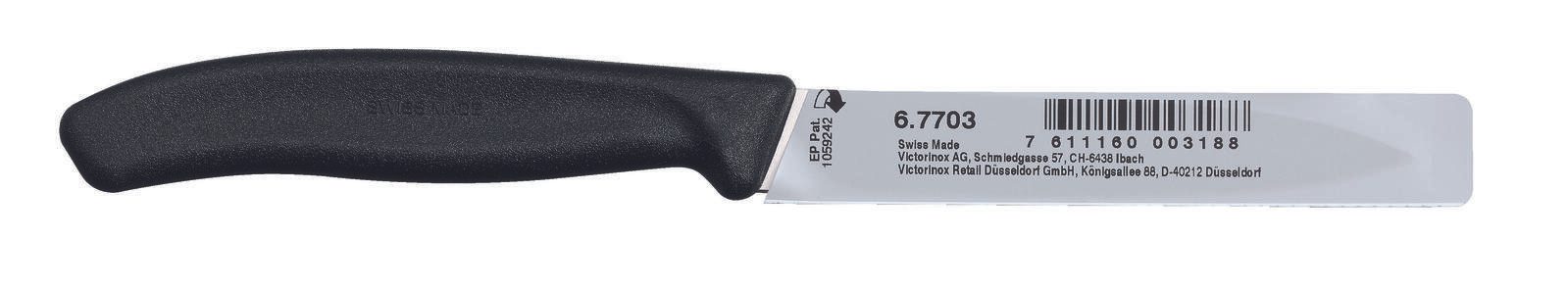 Das VICTORINOX Gemüsemesser Swiss Classic besticht nicht nur durch seine Funktionalität, sondern auch durch sein ansprechendes Design in den Farben Silber und Schwarz. Diese Kombination verleiht dem Messer eine zeitlose Eleganz, die in jeder Küche Akzente setzt.