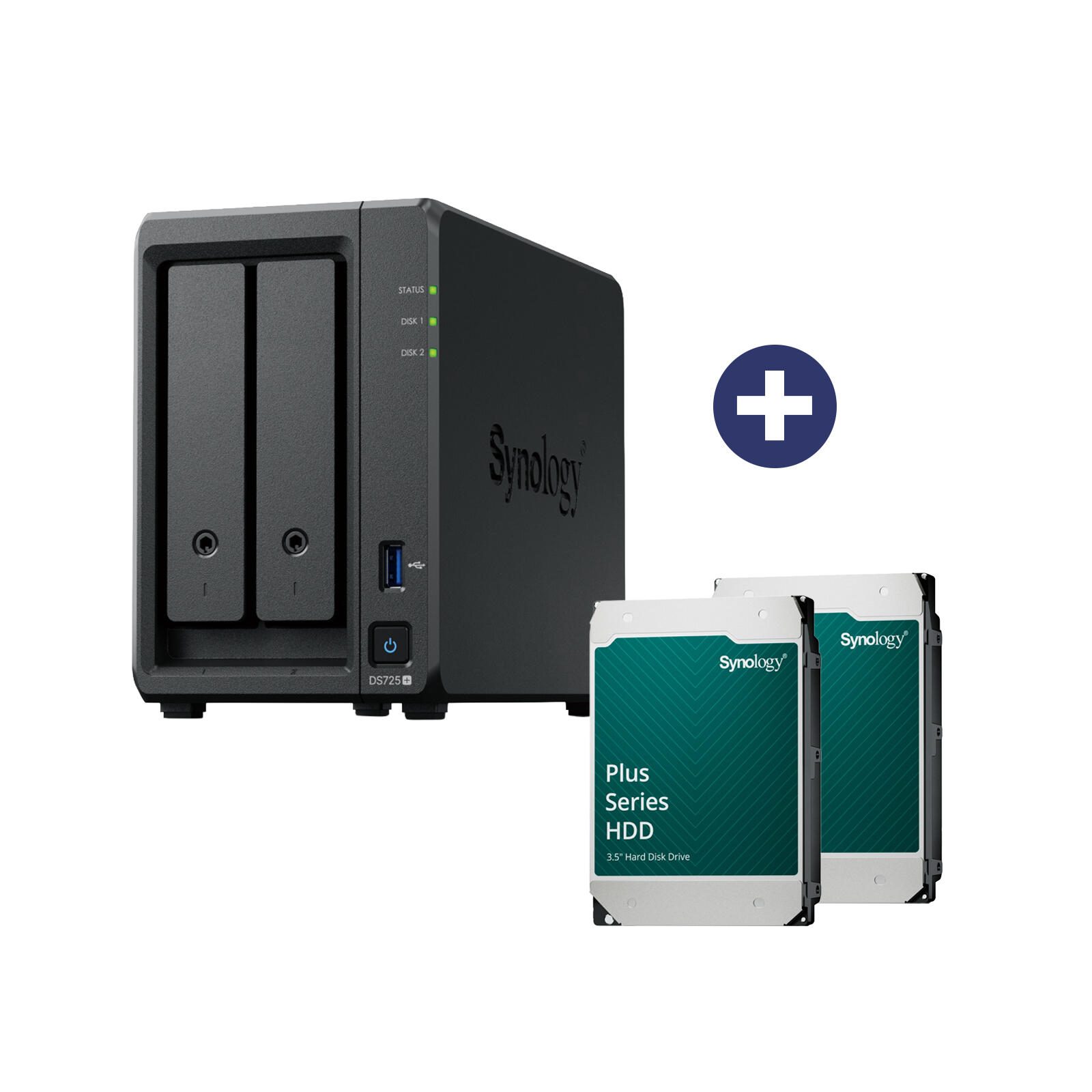 Synology Disk Station DS725+ NAS-Server + Synology Plus 3.5" SATA 6Gb/s Festplatte 32 TB (2x 16 TB)