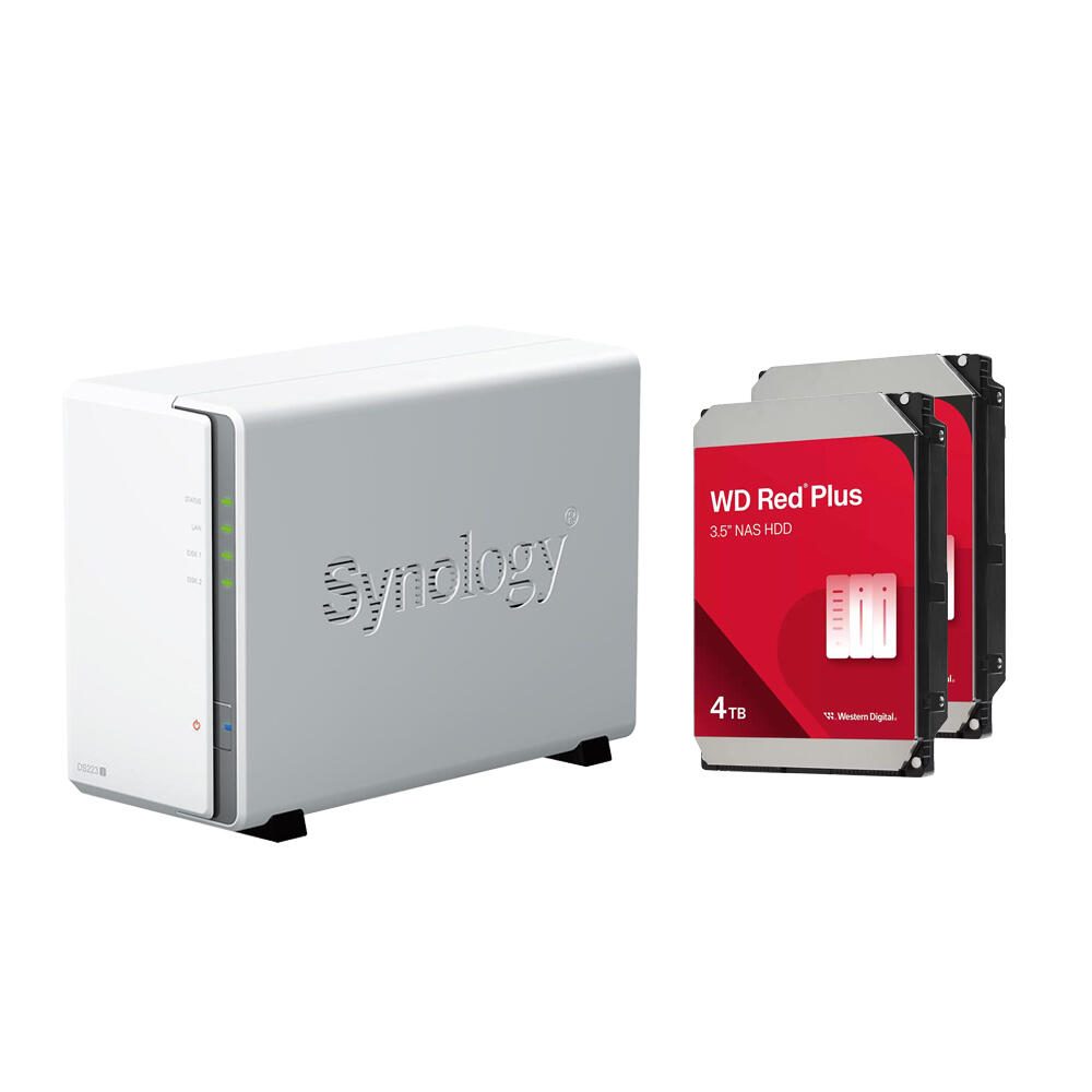 Synology DiskStation DS223J 2 Einschübe NAS-Server Leergehäuse + 8 TB (2x 4 TB) WD Red WD40EFZZ SATA 3.5" HDD Festplatten