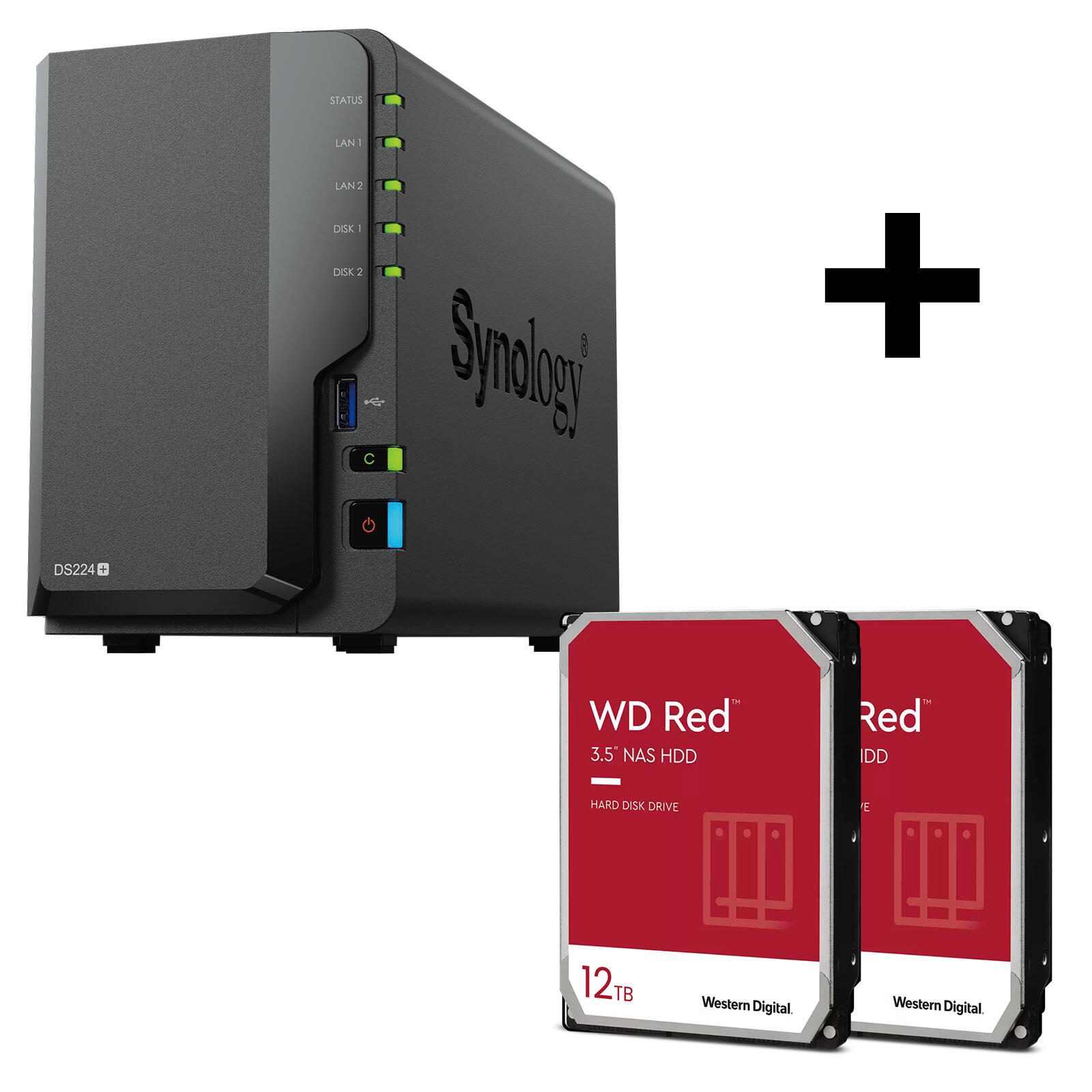 Synology DiskStation DS224+ 2 Einschübe NAS-Server Leergehäuse + 24TB WD RED Plus 2x 12 TB WD RED Plus - SATA, 3.5", WD120EFGX